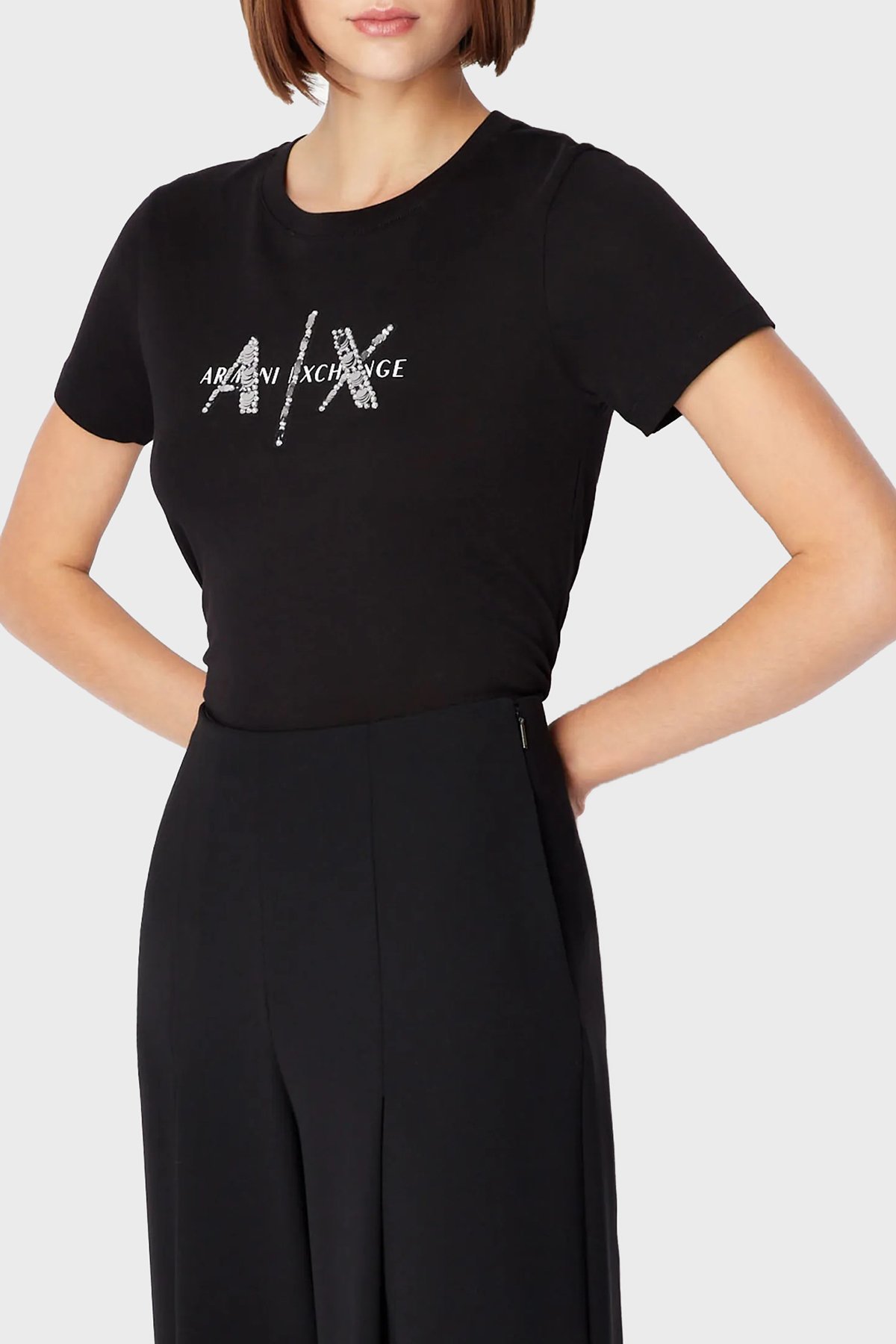 Armani Exchage % 100 Pamuk Regular Fit Bisiklet Yaka Baskılı Bayan T Shirt XW000542 AF10359 UC001 SİYAH - Armani Exchange Armani Exchage % 100 Pamuk Regular Fit Bisiklet Yaka Baskılı Bayan T Shirt XW000542 AF10359 UC001 SİYAH - Armani Exchange (1)