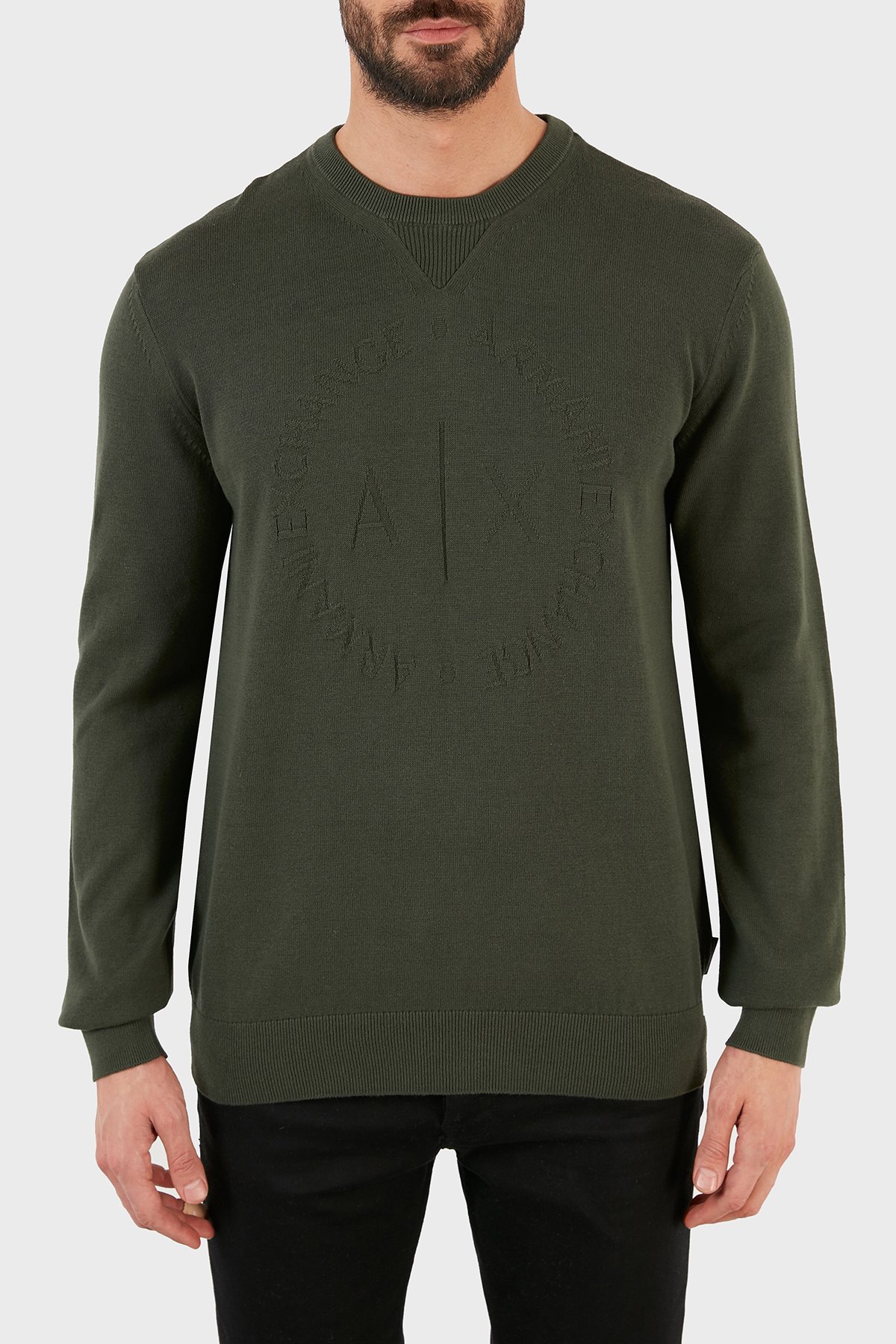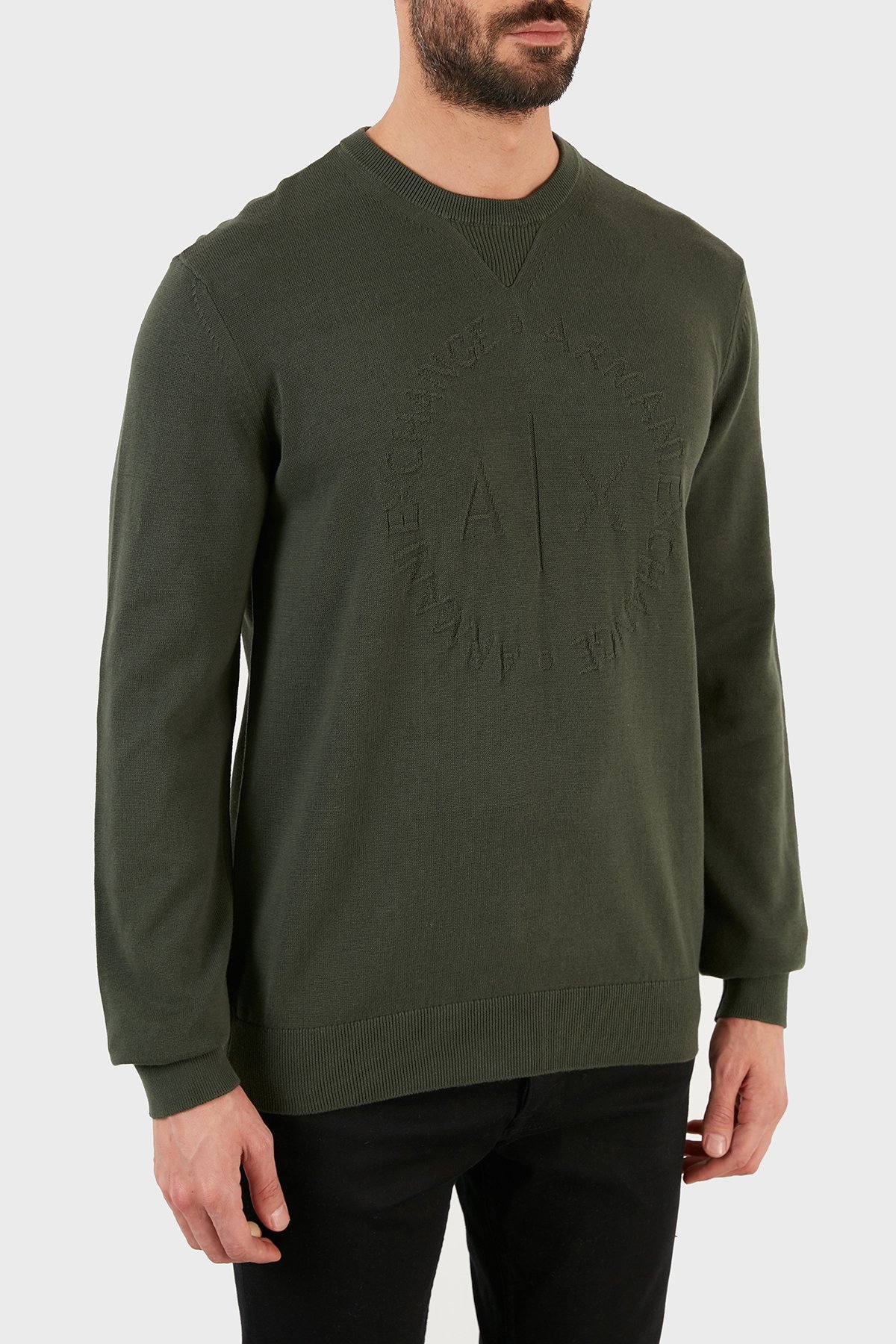 Logolu % 100 Pamuk Bisiklet Yaka Regular Fit Erkek Kazak 8NZM3D ZM8CZ 1863 HAKİ