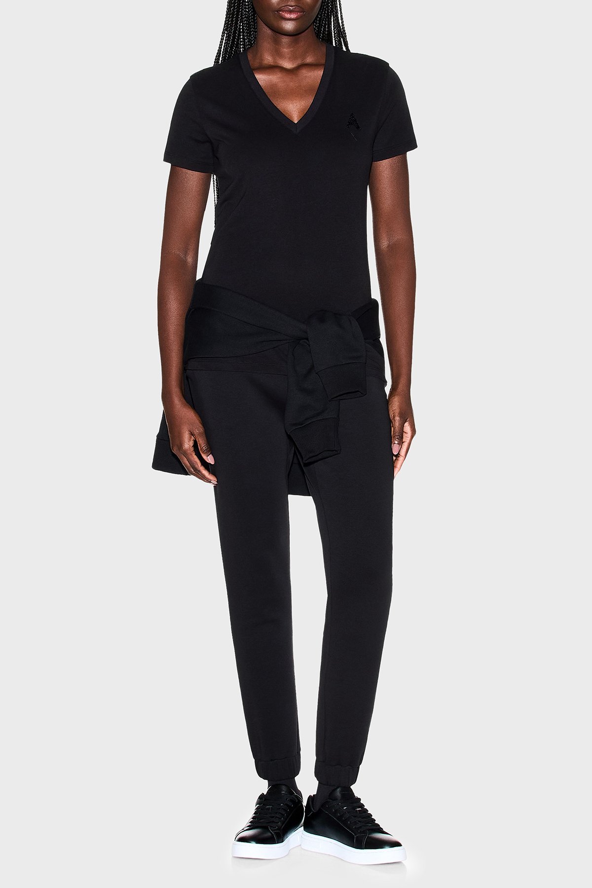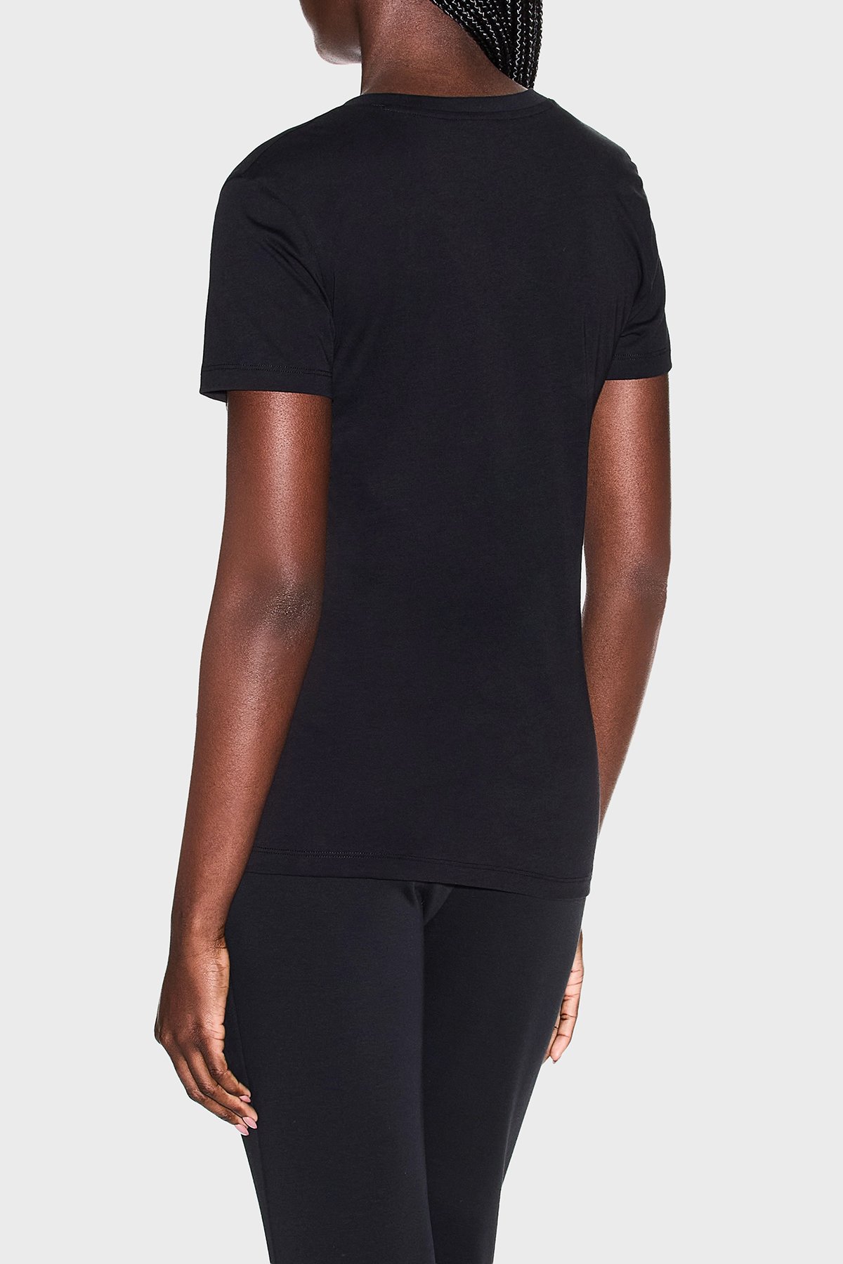 Logolu % 100 Pamuk Regular Fit V Yaka Bayan T Shirt XW002330 AF10356 UC001 SİYAH