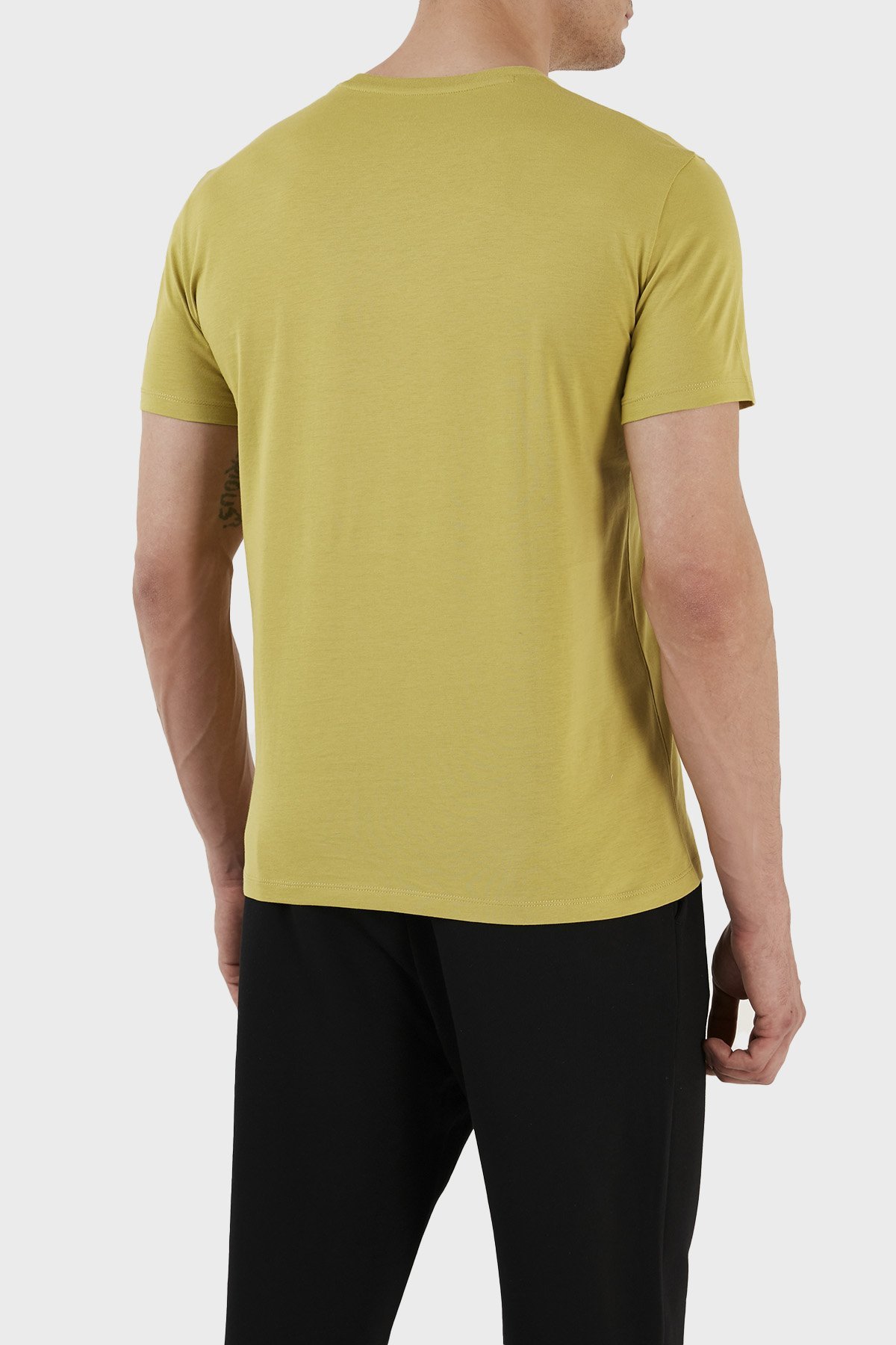 Logolu Bisiklet Yaka % 100 Pamuk Slim Fit Erkek T Shirt 8NZT72 Z8H4Z 1883 FISTIK YEŞİL