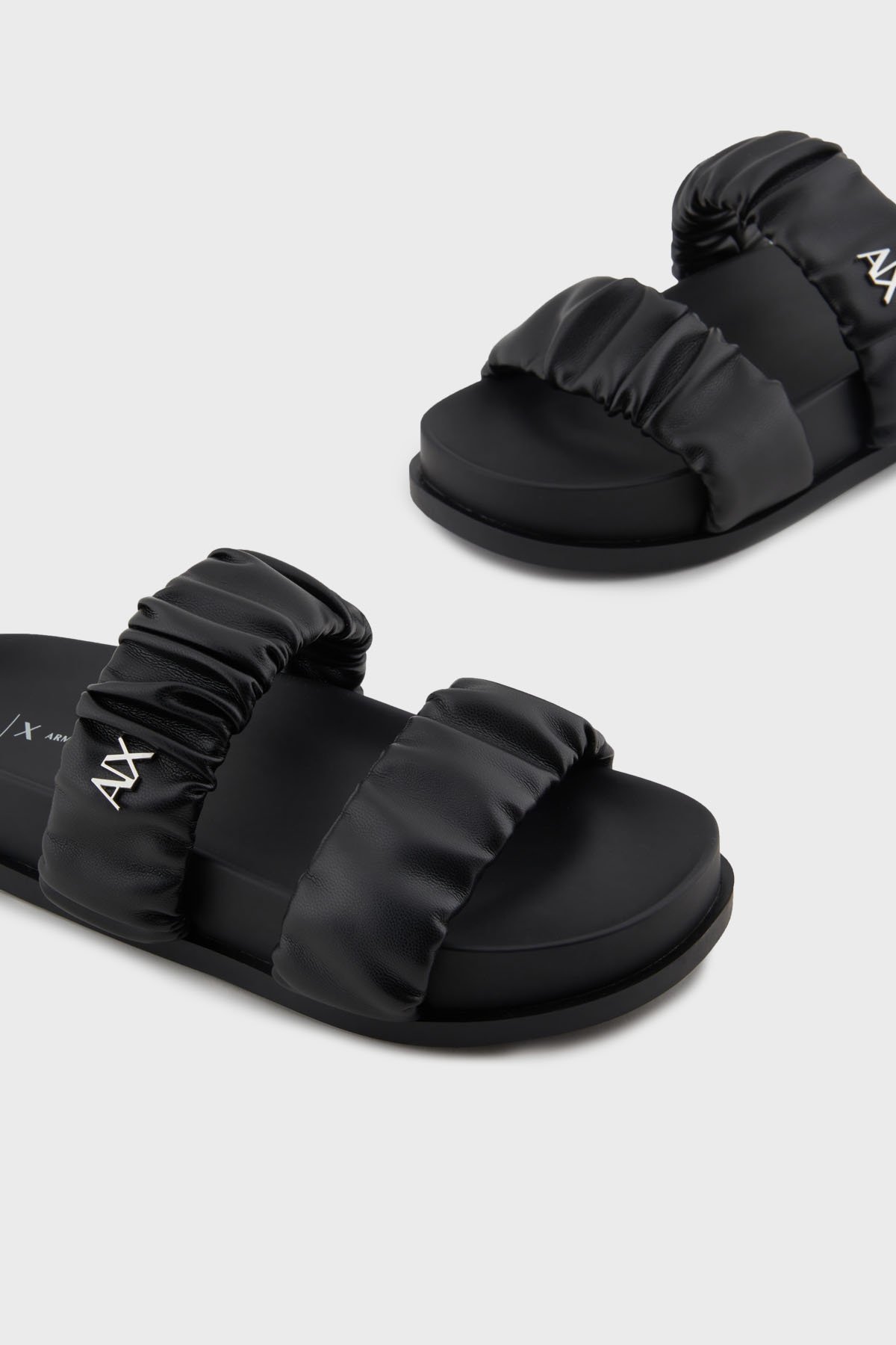 Logolu Çift Bantlı Büzgü Detaylı Bayan Terlik XDP062 XV926 00002 SİYAH