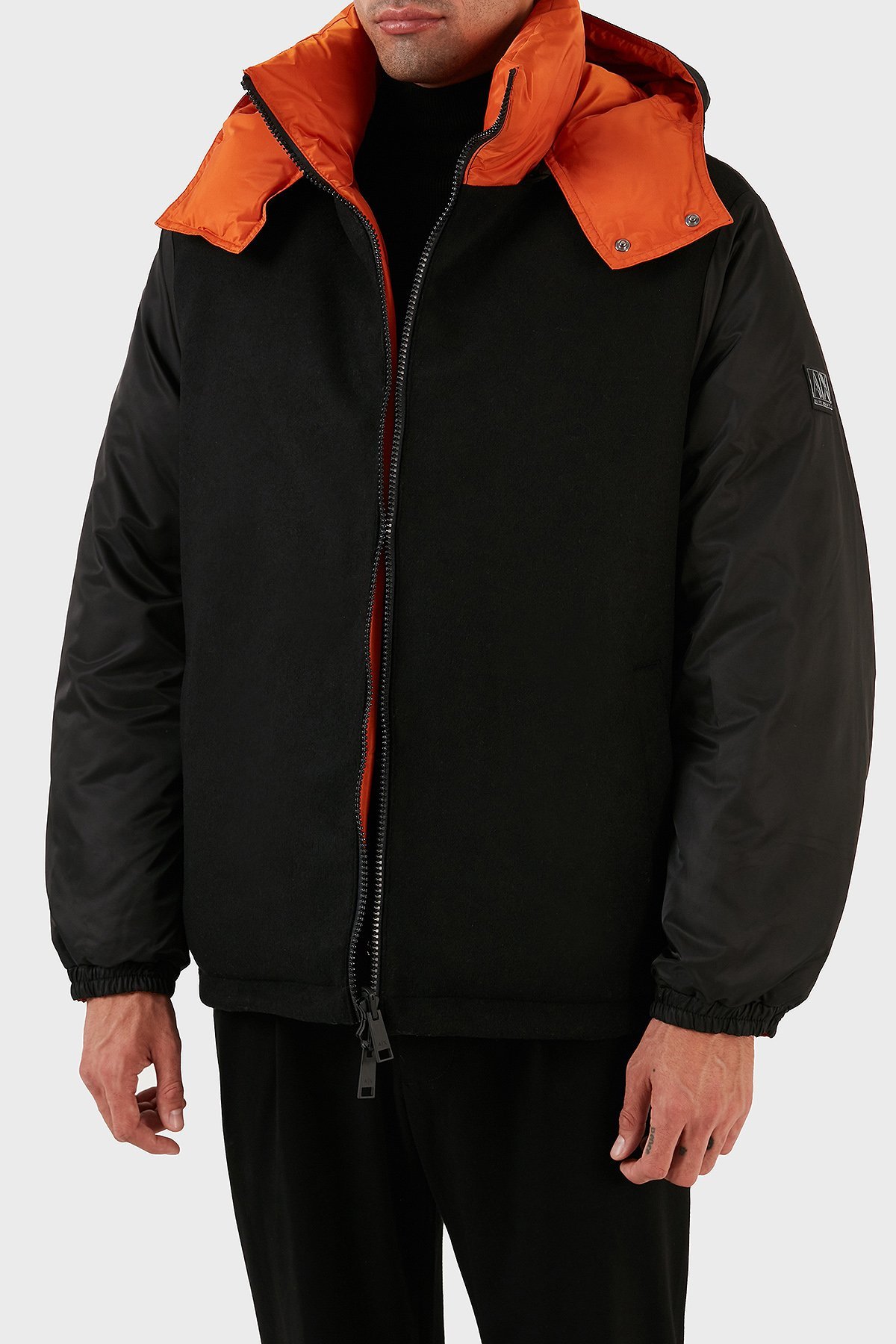 Logolu Çıkarılabilir Kapüşonlu Çift Taraflı Erkek Mont 6RZB16 ZNJ7Z 52AJ SİYAH-TURUNCU