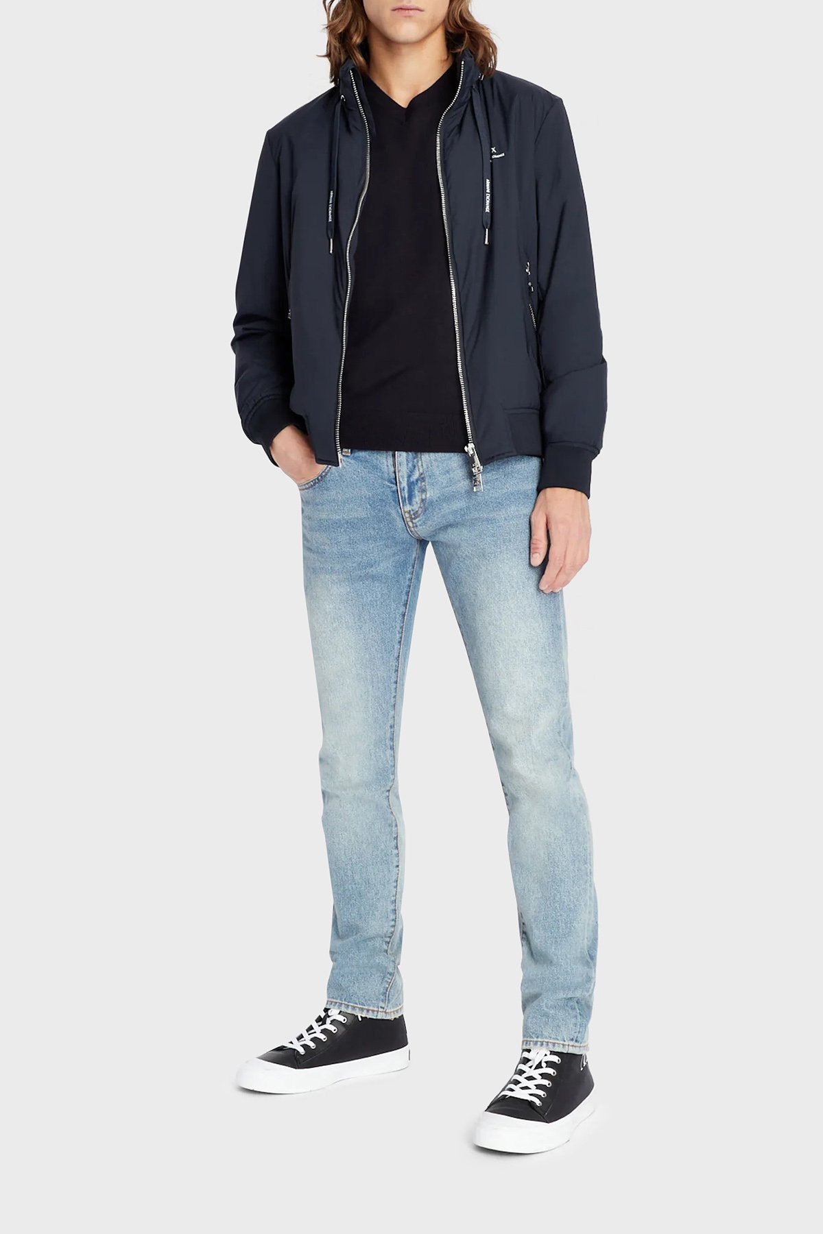 Logolu Gizli Kapüşonlu Regular Fit Erkek Mont 8NZB60 ZN97Z 1583 LACİVERT