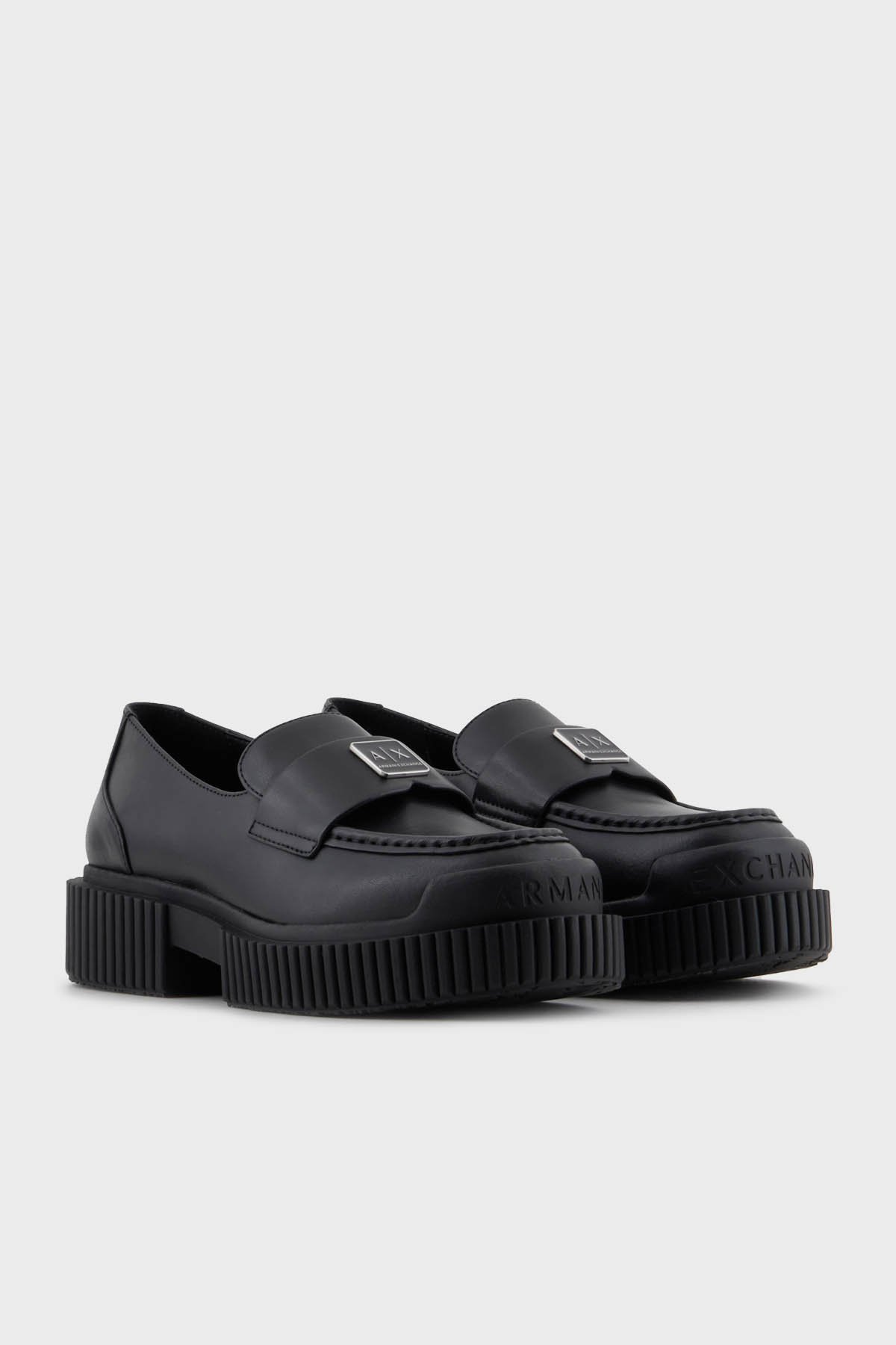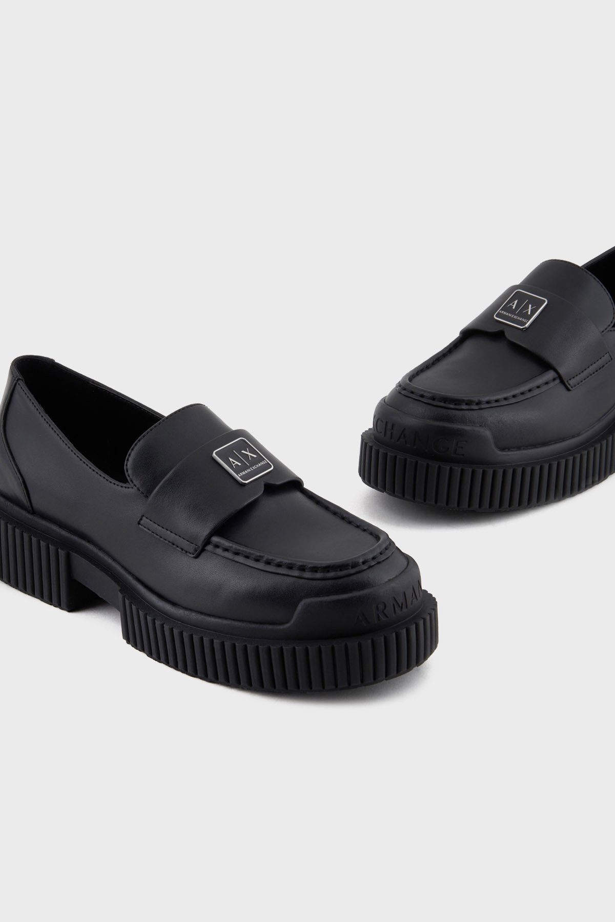 Logolu Hakiki Deri Loafer Bayan Ayakkabı XDA006 XV874 00002 SİYAH