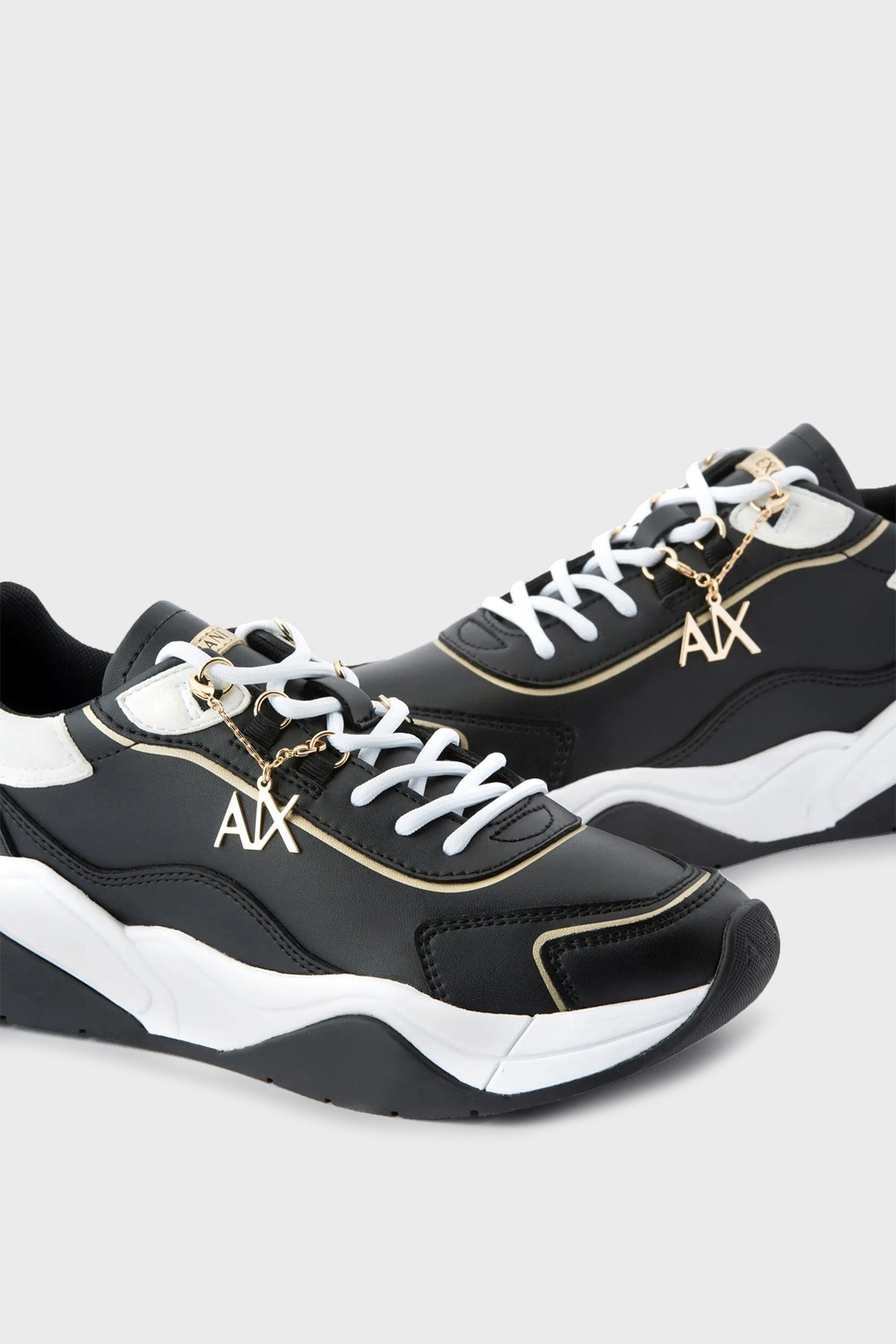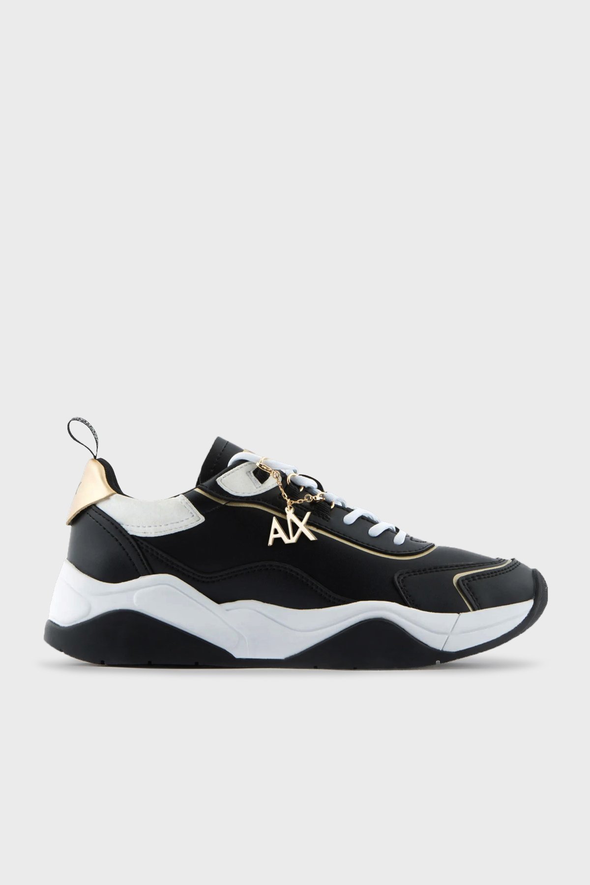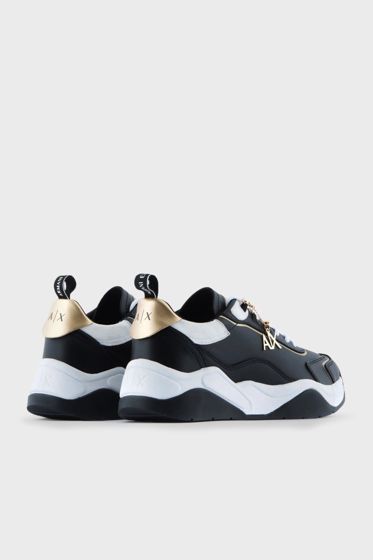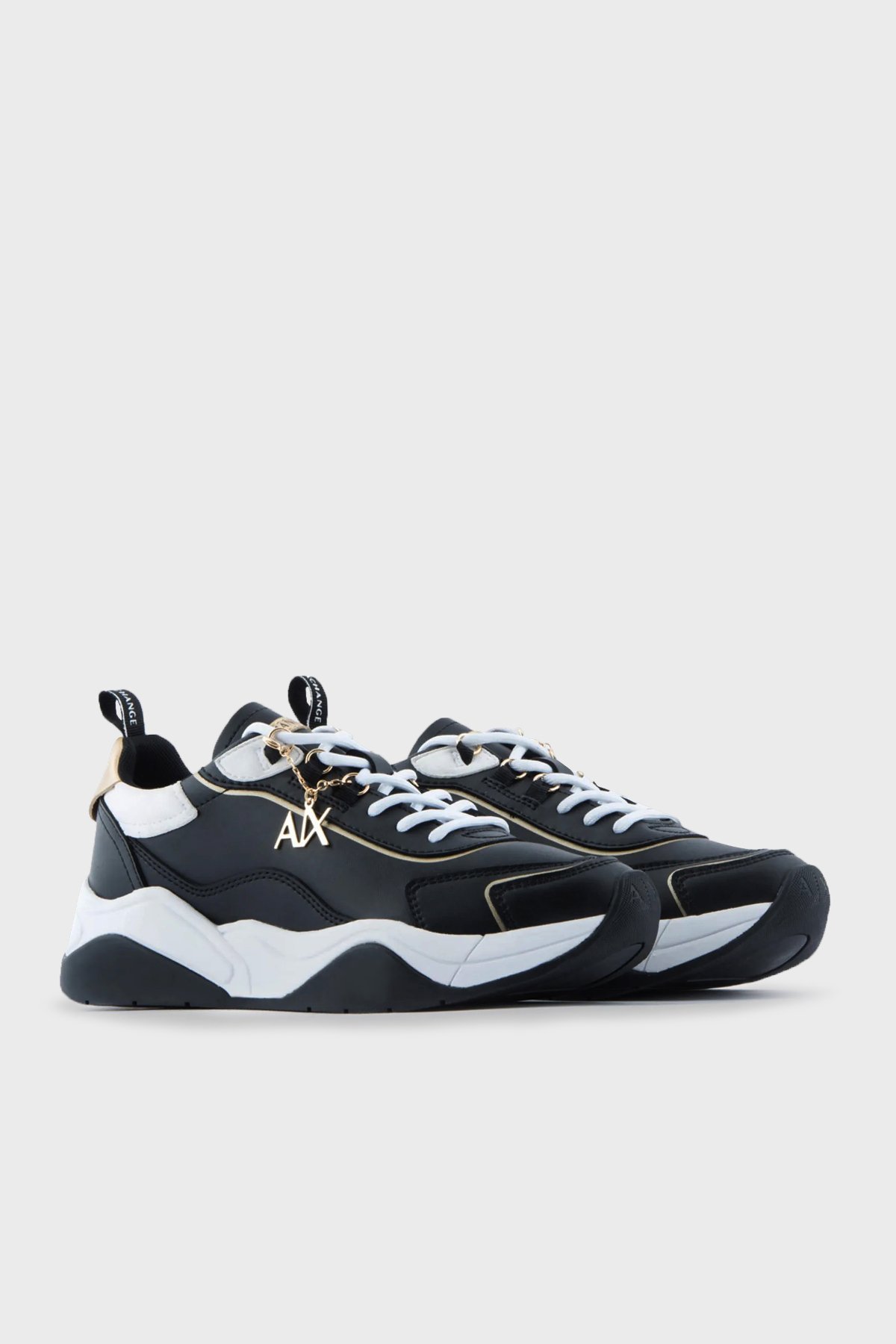 Logolu Kalın Taban Bayan Ayakkabı XDX104 XV580 S038 SİYAH-BEYAZ-GOLD