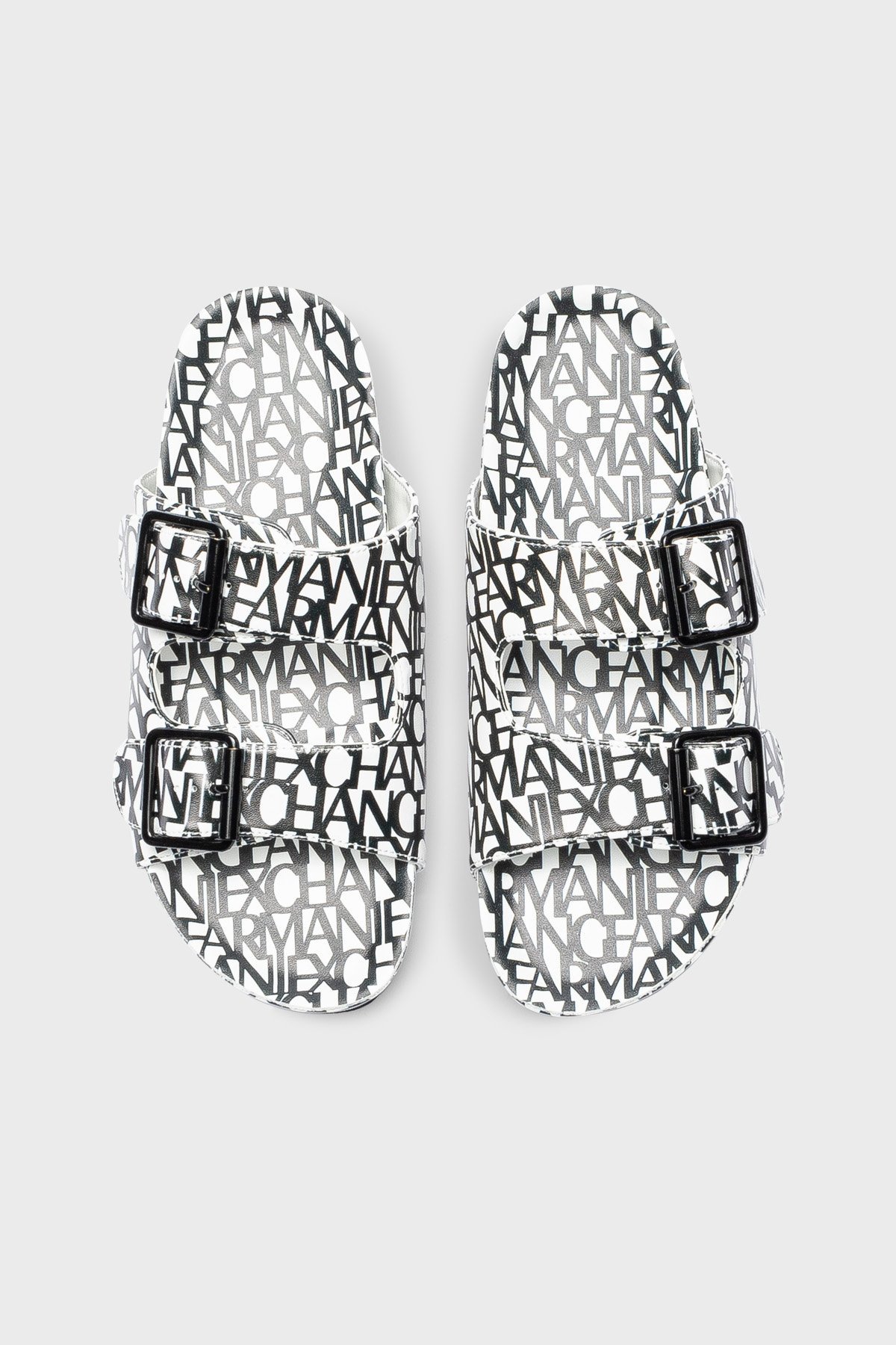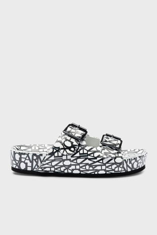 Logolu Kalın Taban Kemerli Bayan Terlik XDP031 XV683 Q491 BEYAZ-SİYAH