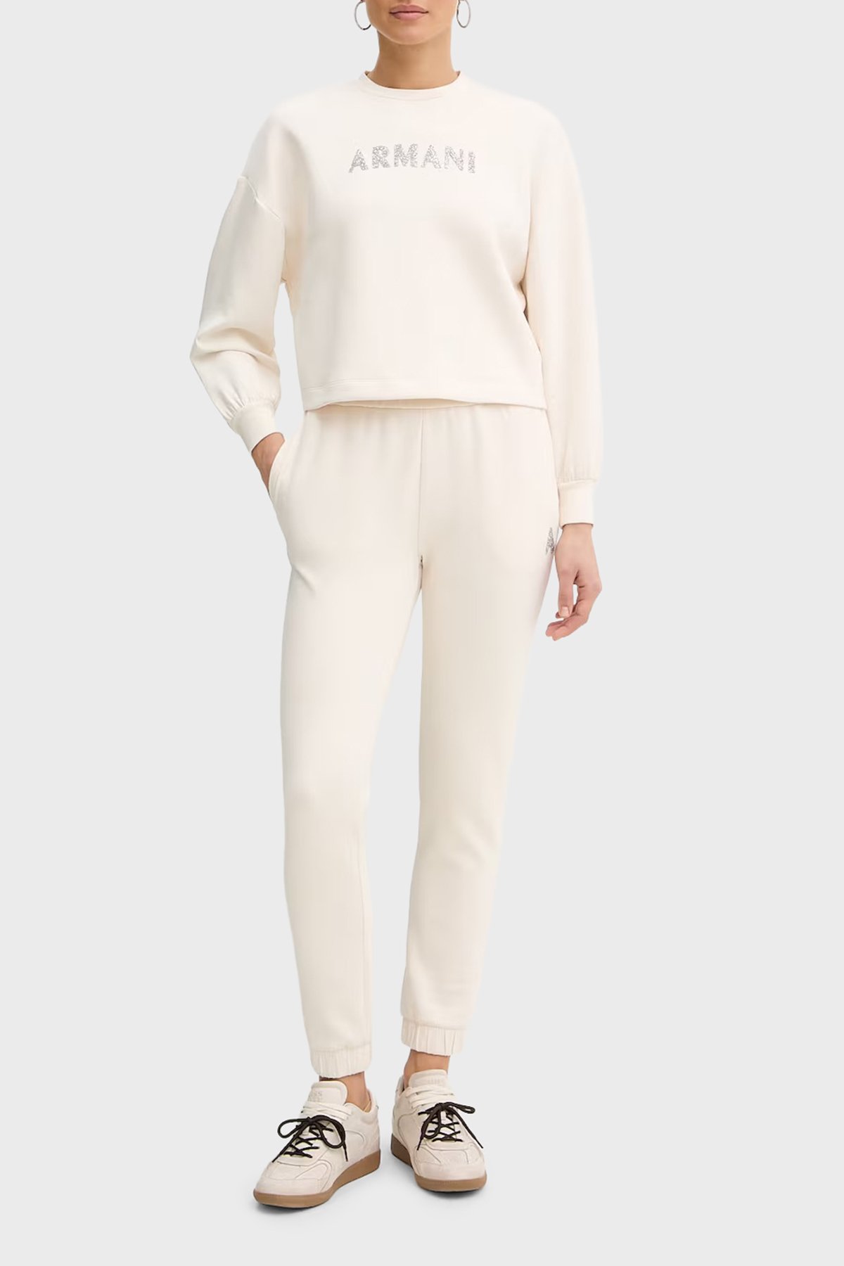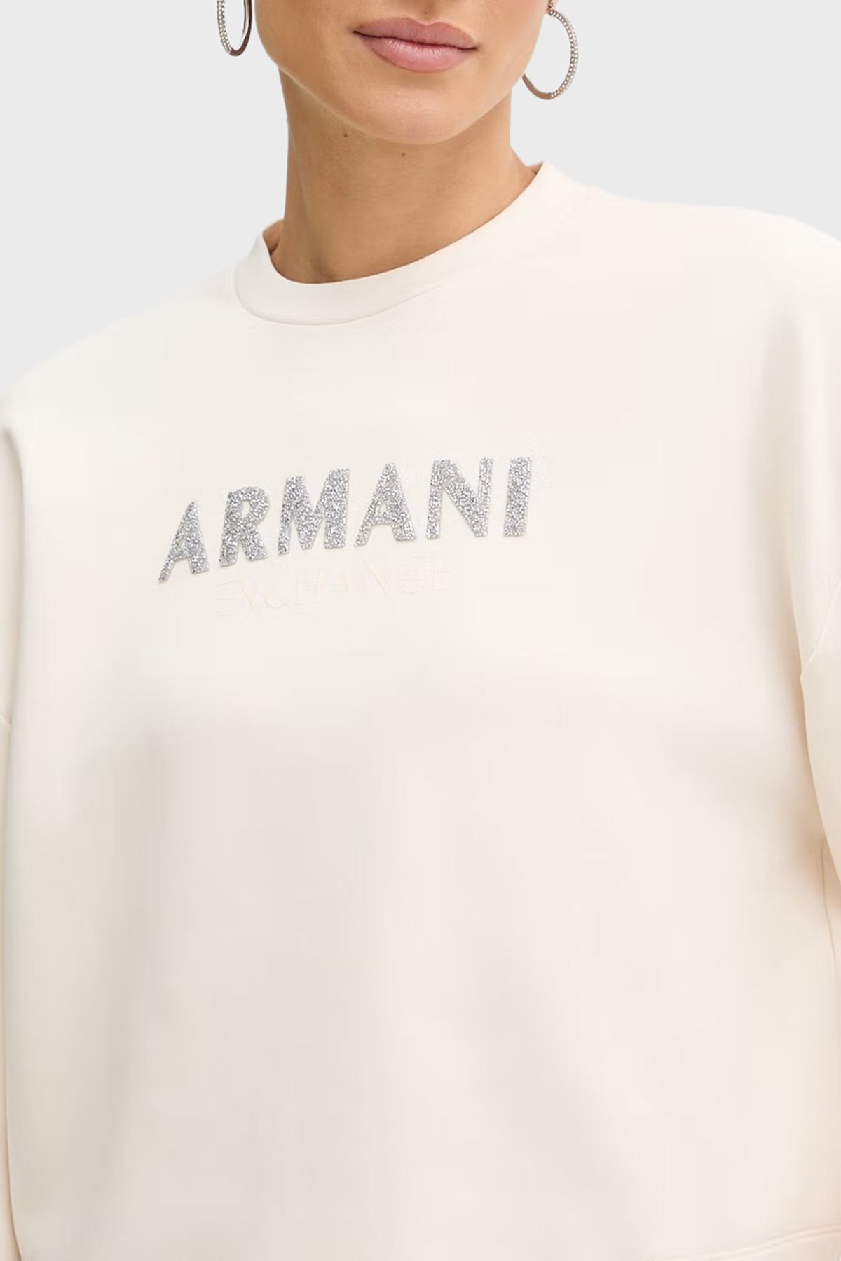 Armani Exchange Comfort Fit Kapüşonlu Taşlı Logolu Bayan Sweat XW000094 AF10804 U1003 EKRU - Armani Exchange Armani Exchange Comfort Fit Kapüşonlu Taşlı Logolu Bayan Sweat XW000094 AF10804 U1003 EKRU - Armani Exchange (1)