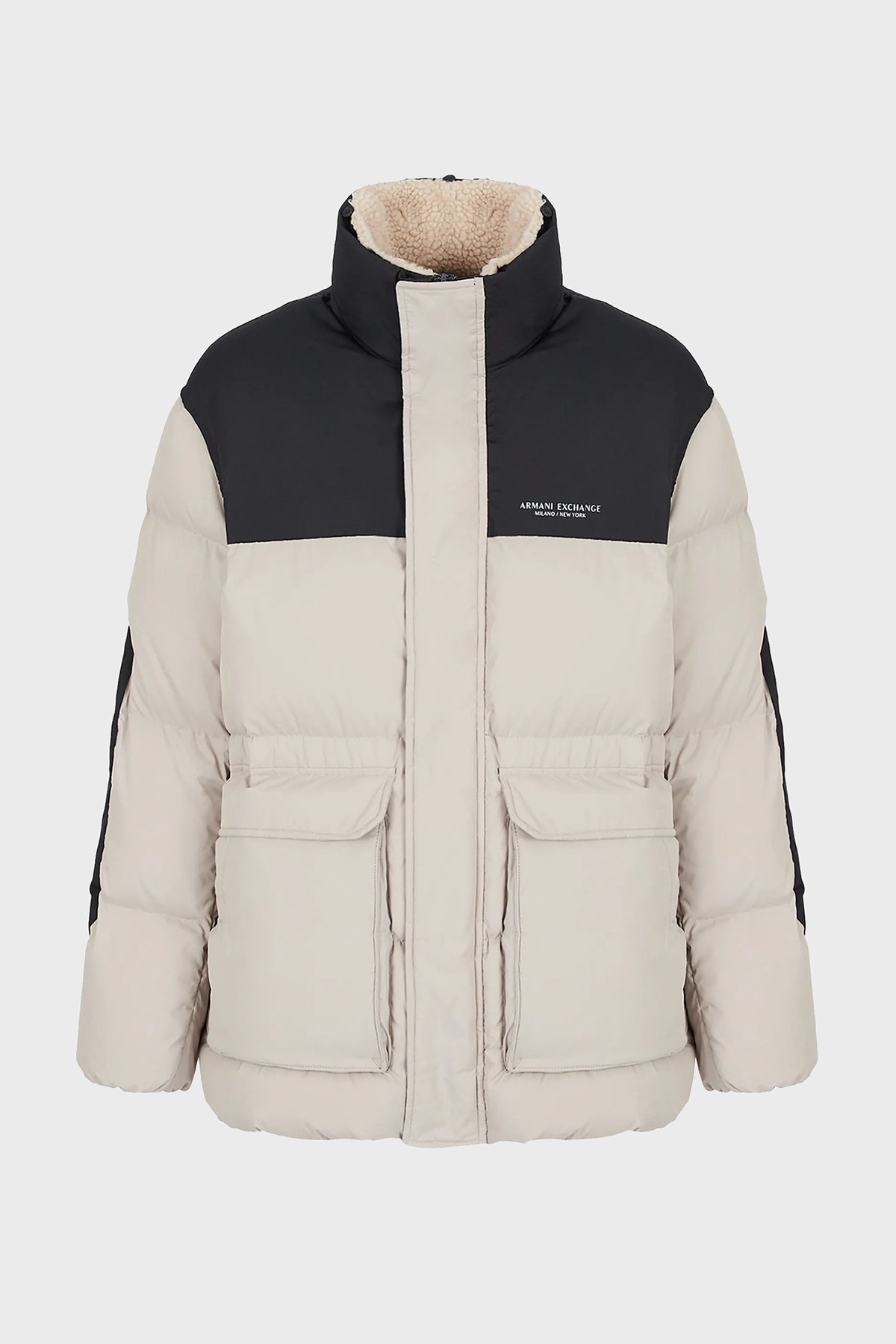 Logolu Regular Fit Kuş Tüyü Dolgulu Dik Yaka Erkek Mont 6LZBL2 ZNWMZ 2786 BEJ
