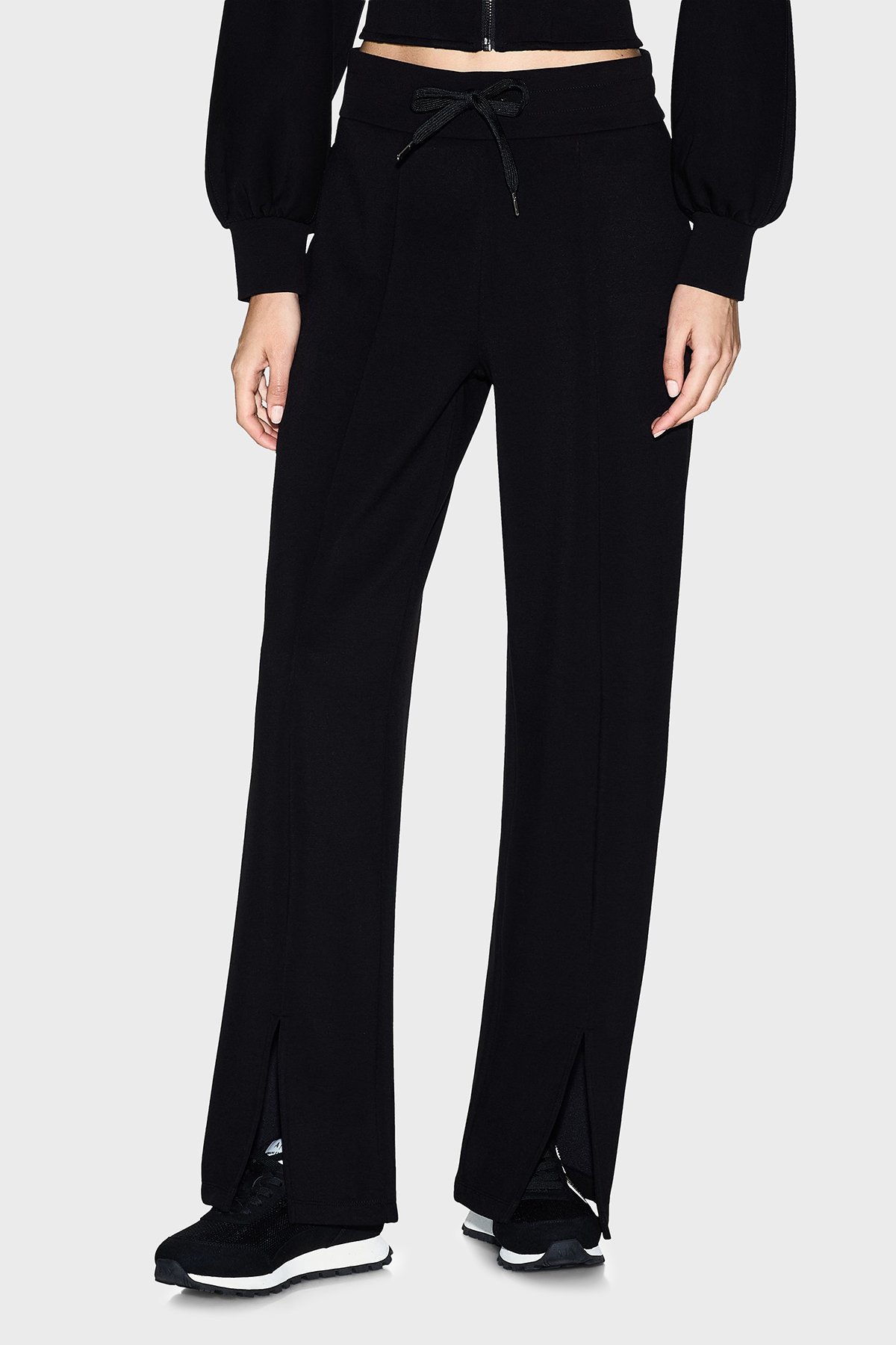 Logolu Relaxed Fit Yırtmaçlı Geniş Paça Jogger Bayan Pantolon XW001289 AF16111 UC001 SİYAH