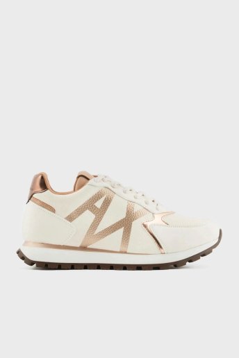 Logolu Sneaker Bayan Ayakkabı XDX139 XV733 K624 BEYAZ-KAHVE