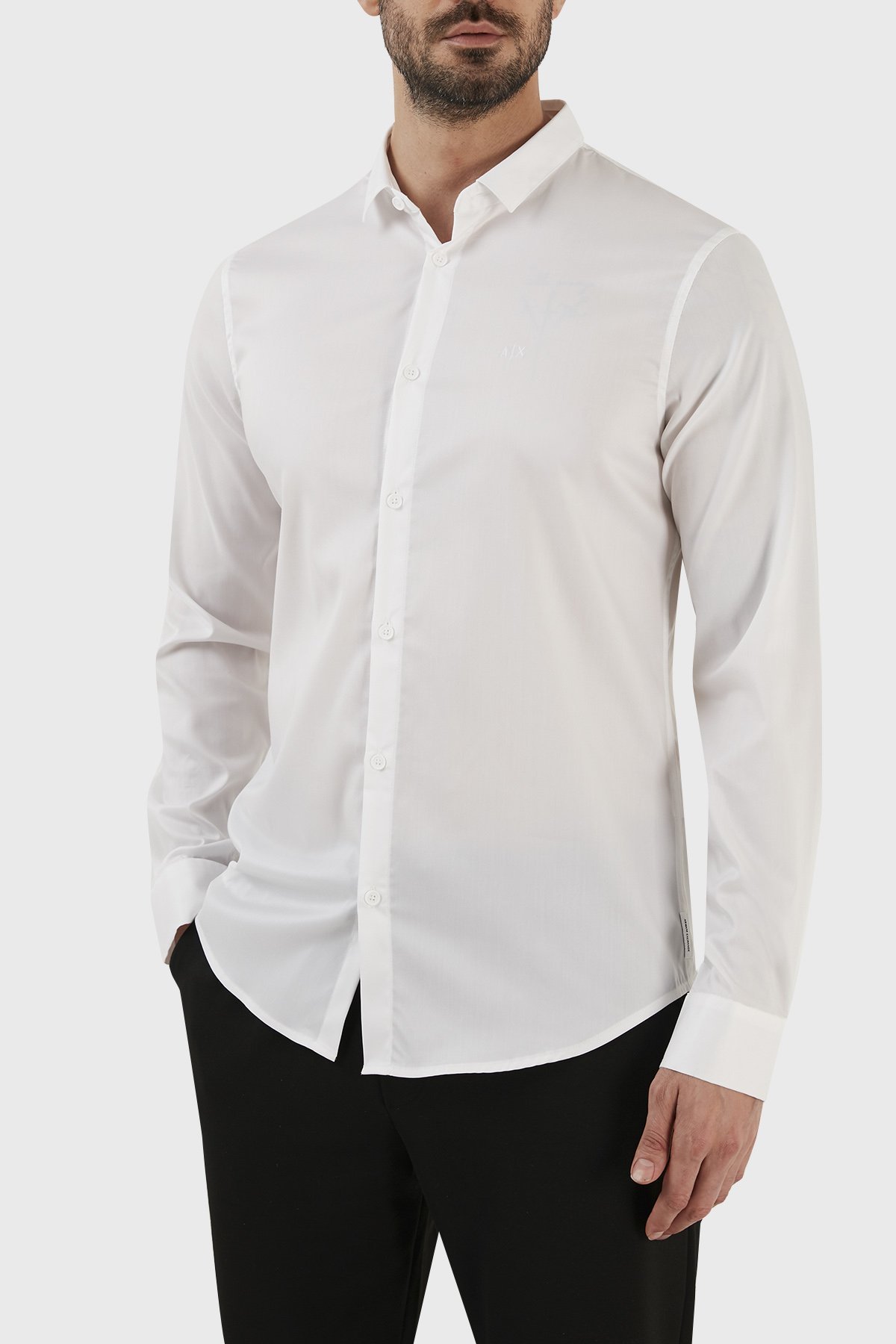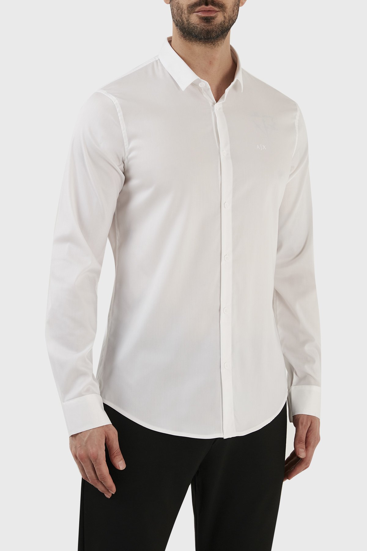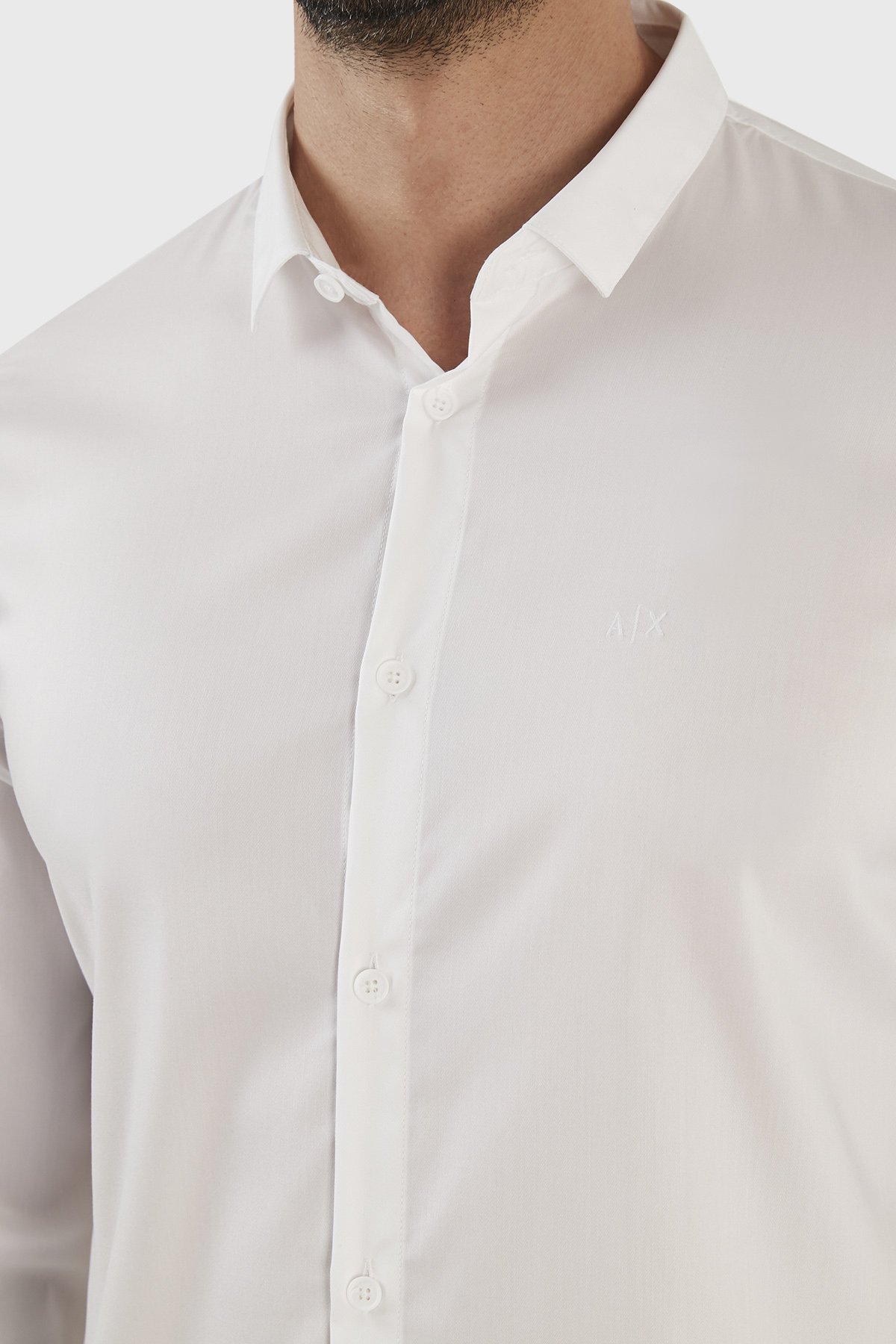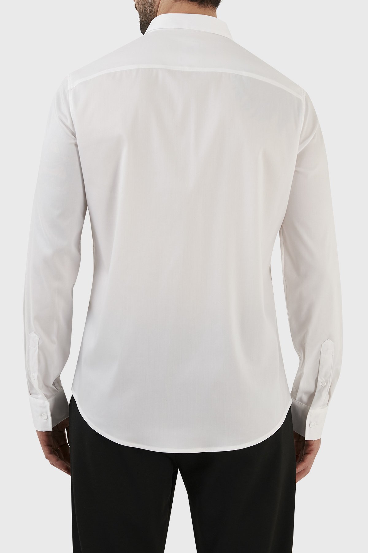 Logolu Uzun Kollu Streç Erkek Gömlek 8NZC49 ZNYXZ 1100 BEYAZ