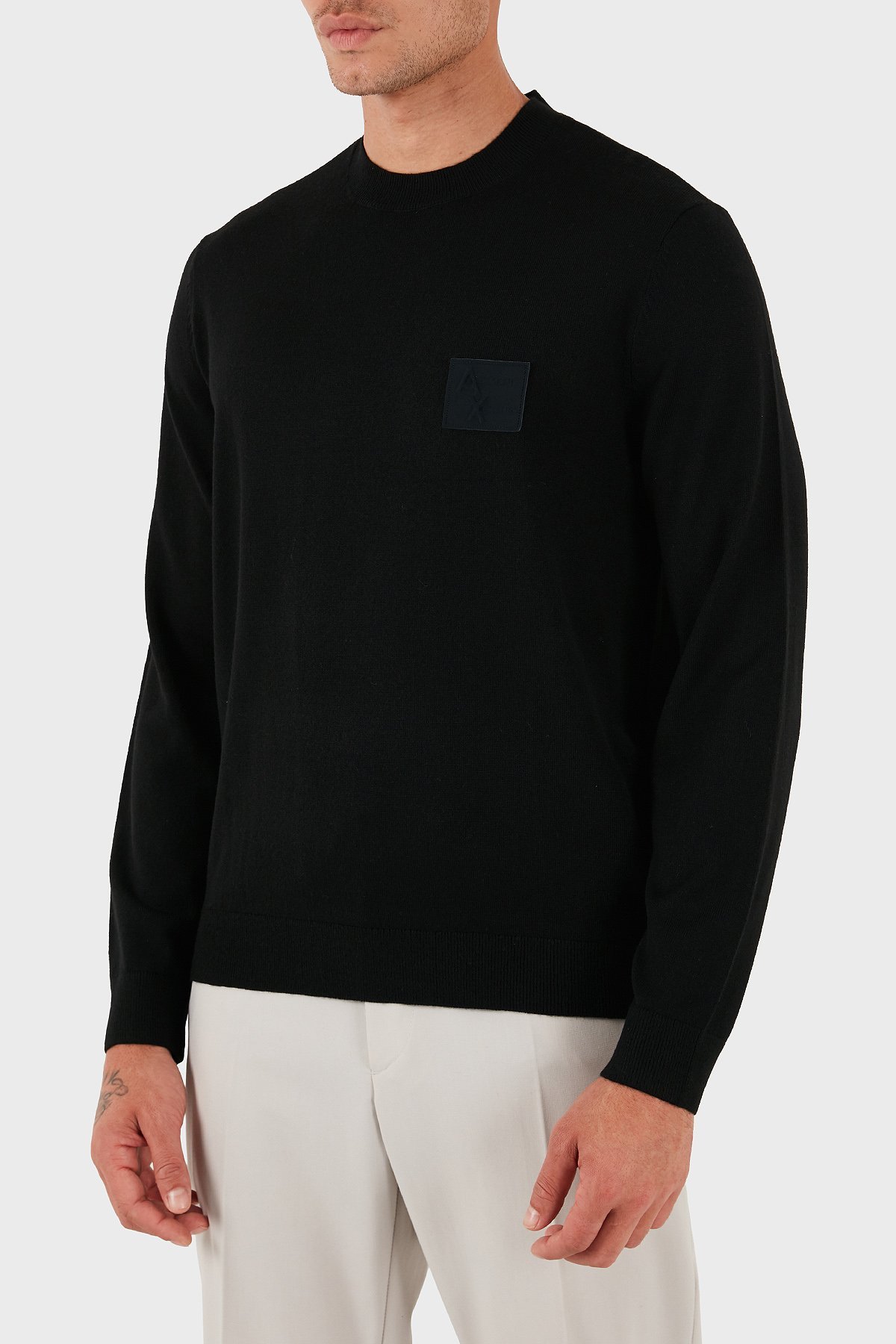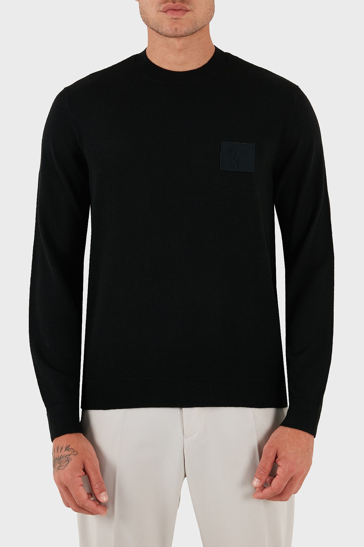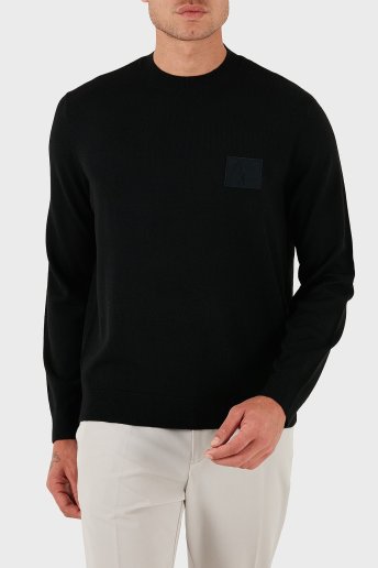 Logolu Yün Karışımlı Regular Fit Yuvarlak Yaka Erkek Kazak XM001329 AF11982 UC001 SİYAH