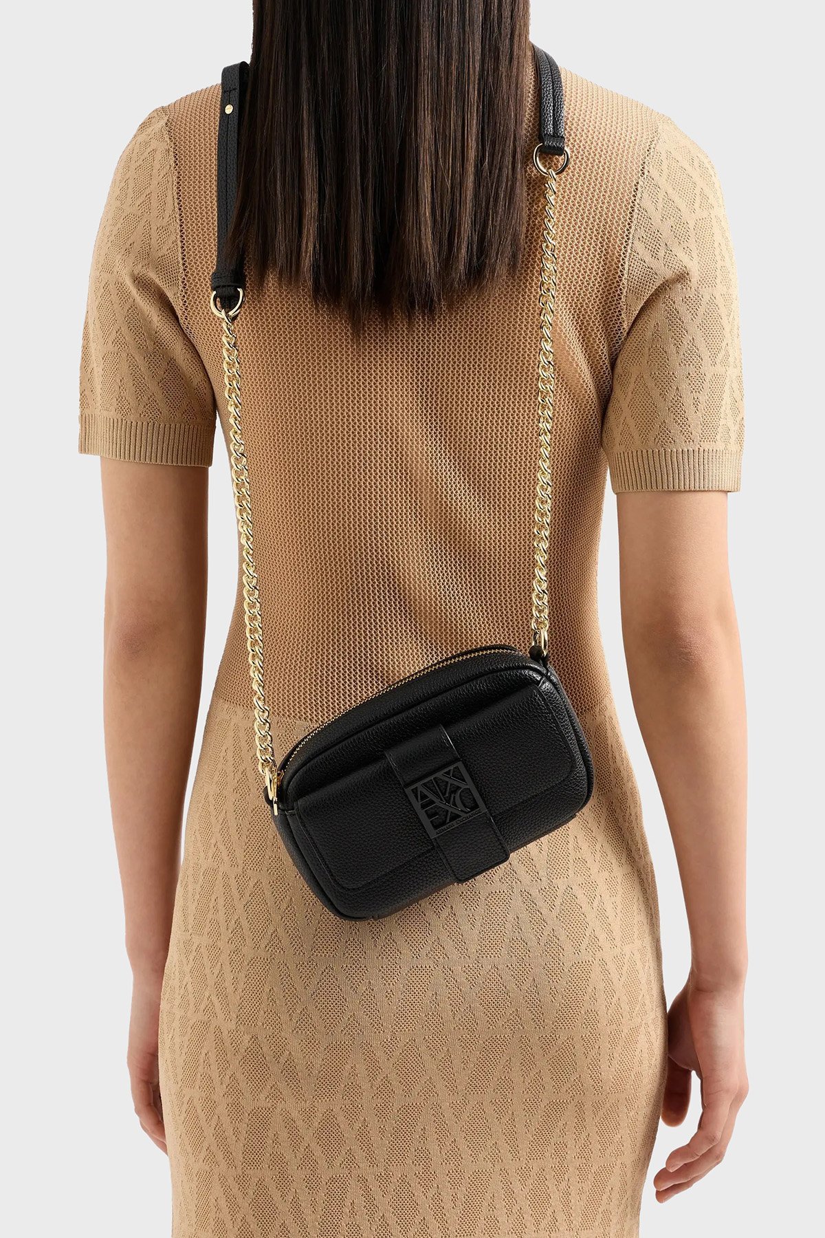 Logolu Zincir Askılı Bayan Çanta XW000324 AF11902 UC001 SİYAH