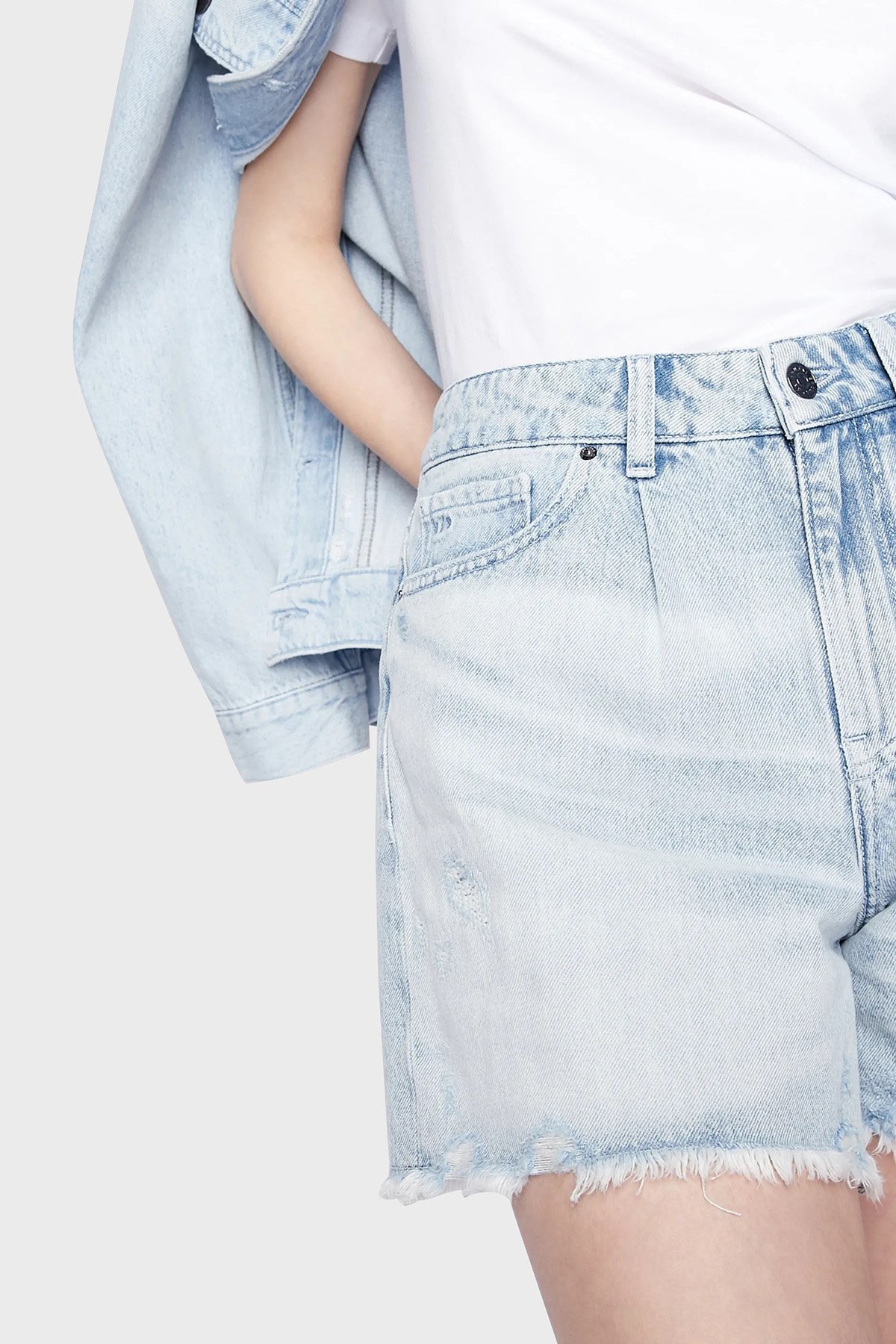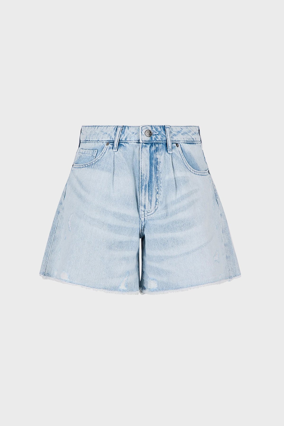 Organik Pamuklu Yırtık Detaylı Yüksek Bel Kot Bayan Short 3RYJ73 Y1NRZ 1500 AÇIK MAVİ