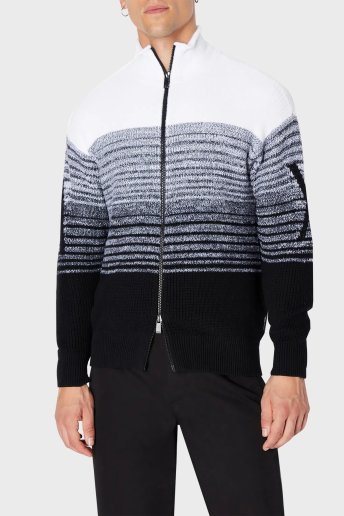 Pamuk Karışımlı Çift Fermuarlı Dik Yaka Triko Erkek Hırka 6RZE5A ZMP3Z 9212 SİYAH-BEYAZ