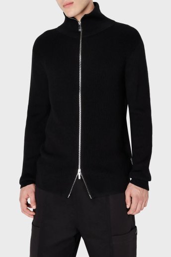 Pamuk ve Yün Karışımlı Regular Fit Dik Yaka Erkek Hırka 6RZE6A ZM1LZ 1200 SİYAH
