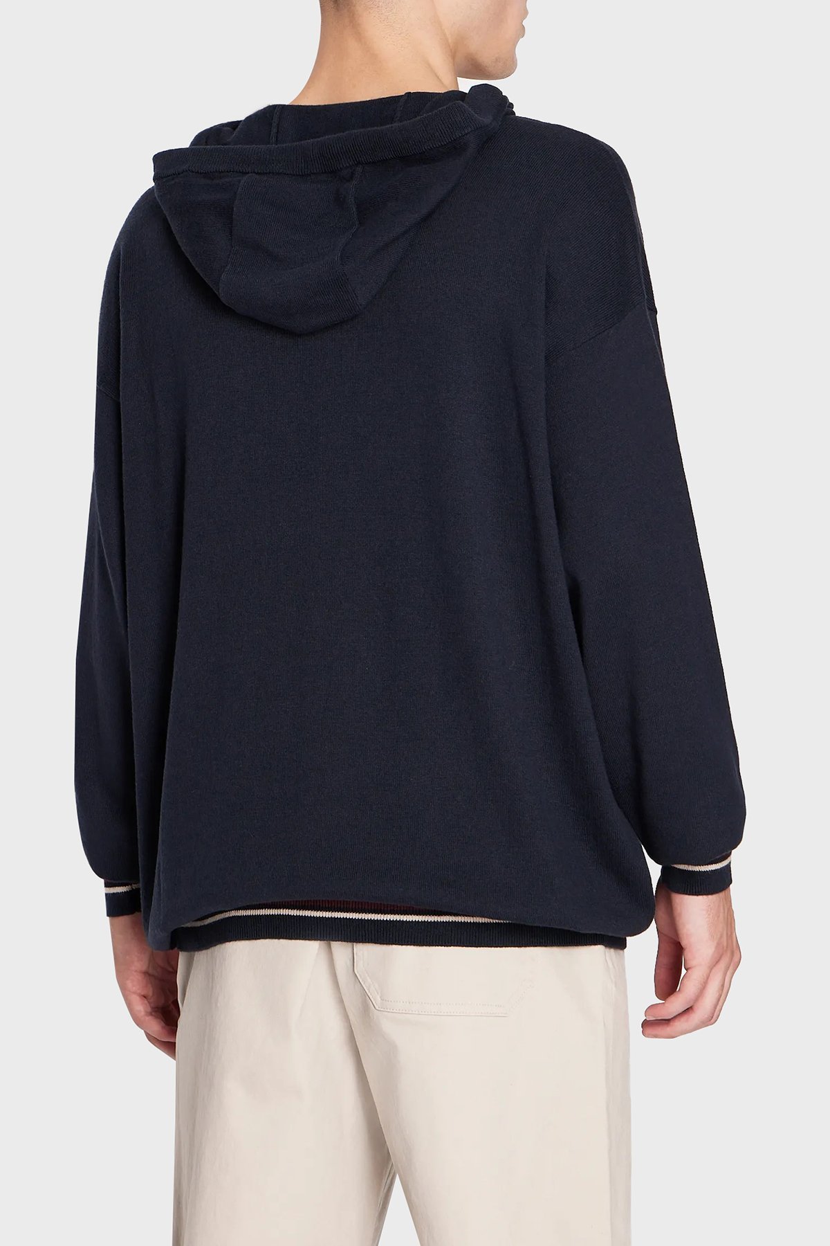 Pamuk ve Yün Karışımlı Regular Fit Kapüşonlu Erkek Kazak 6RZM2A ZM3FZ 1510 LACİVERT