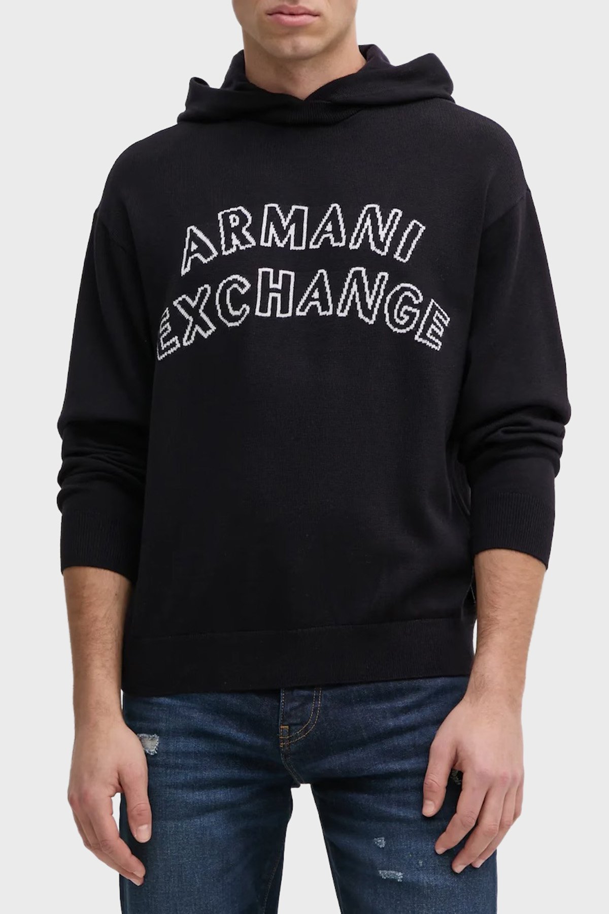 Pamuk ve Yün Karışımlı Regular Fit Logolu Kapüşonlu Erkek Kazak 6DZM2Y ZM4NZ 1510 LACİVERT