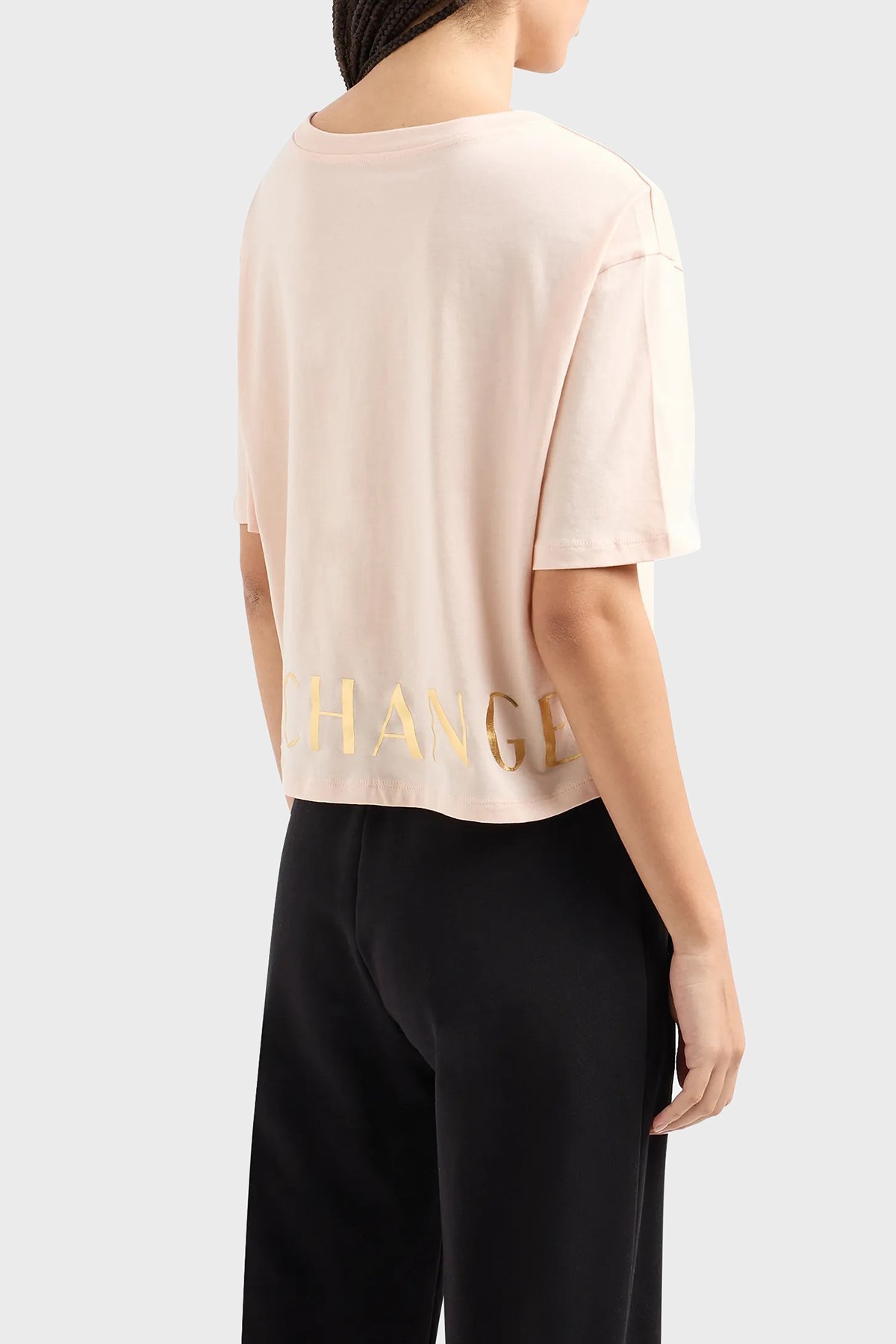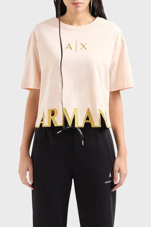 Pamuklu Bisiklet Yaka Crop Bayan T Shirt 3DYTAG YJG3Z 14BD PUDRA