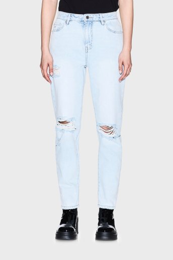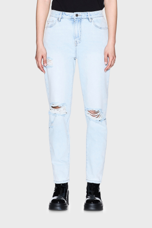 Pamuklu Boyfriend Fit Yüksek Bel Düz Paça Jeans Bayan Kot Pantolon XW000073 AF12859 MB003 AÇIK MAVİ
