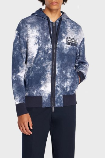 Pamuklu Kapüşonlu Fermuarlı Regular Fit Tasarım Erkek Sweat 6RZMJL ZJDGZ 21CE BEYAZ-MAVİ