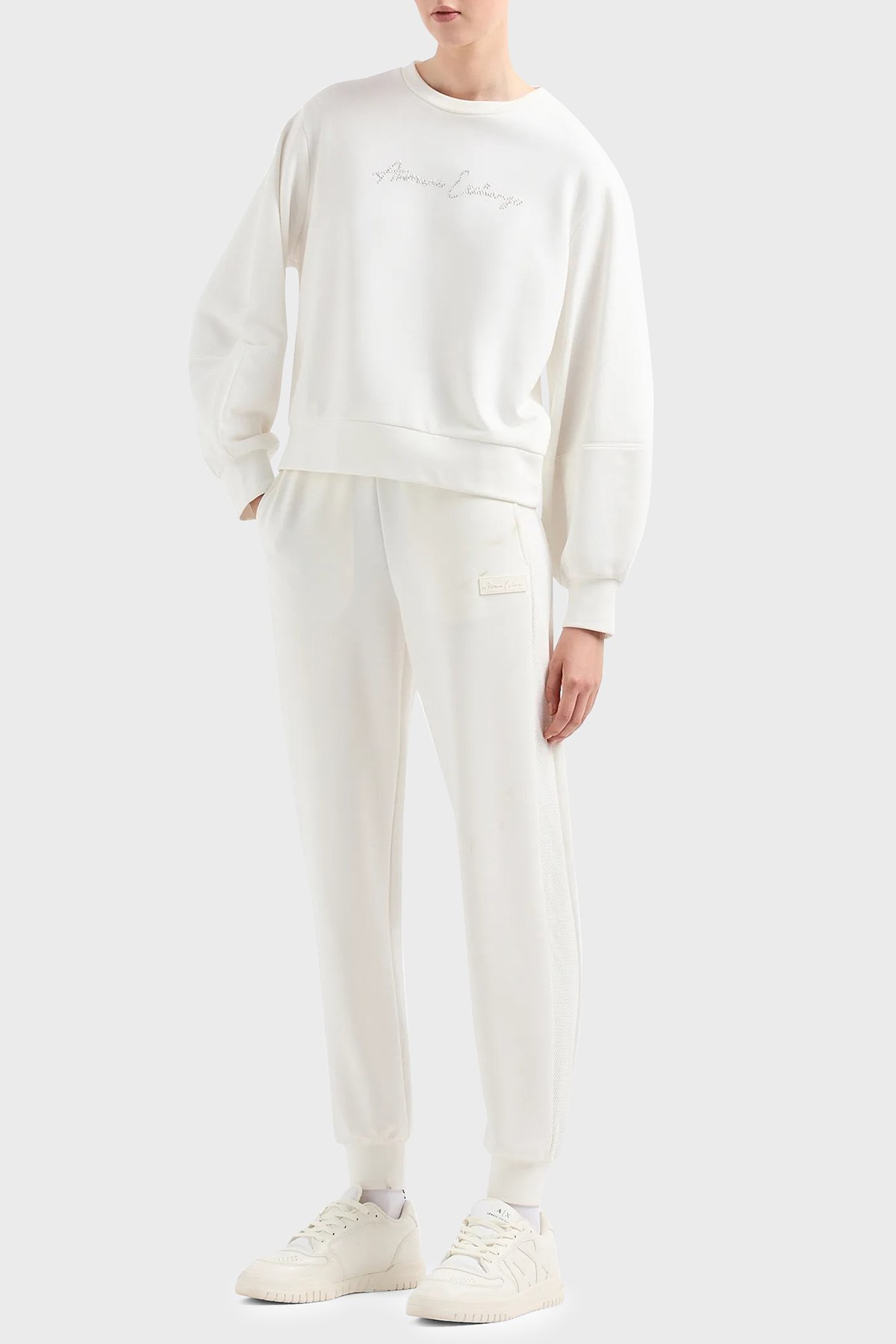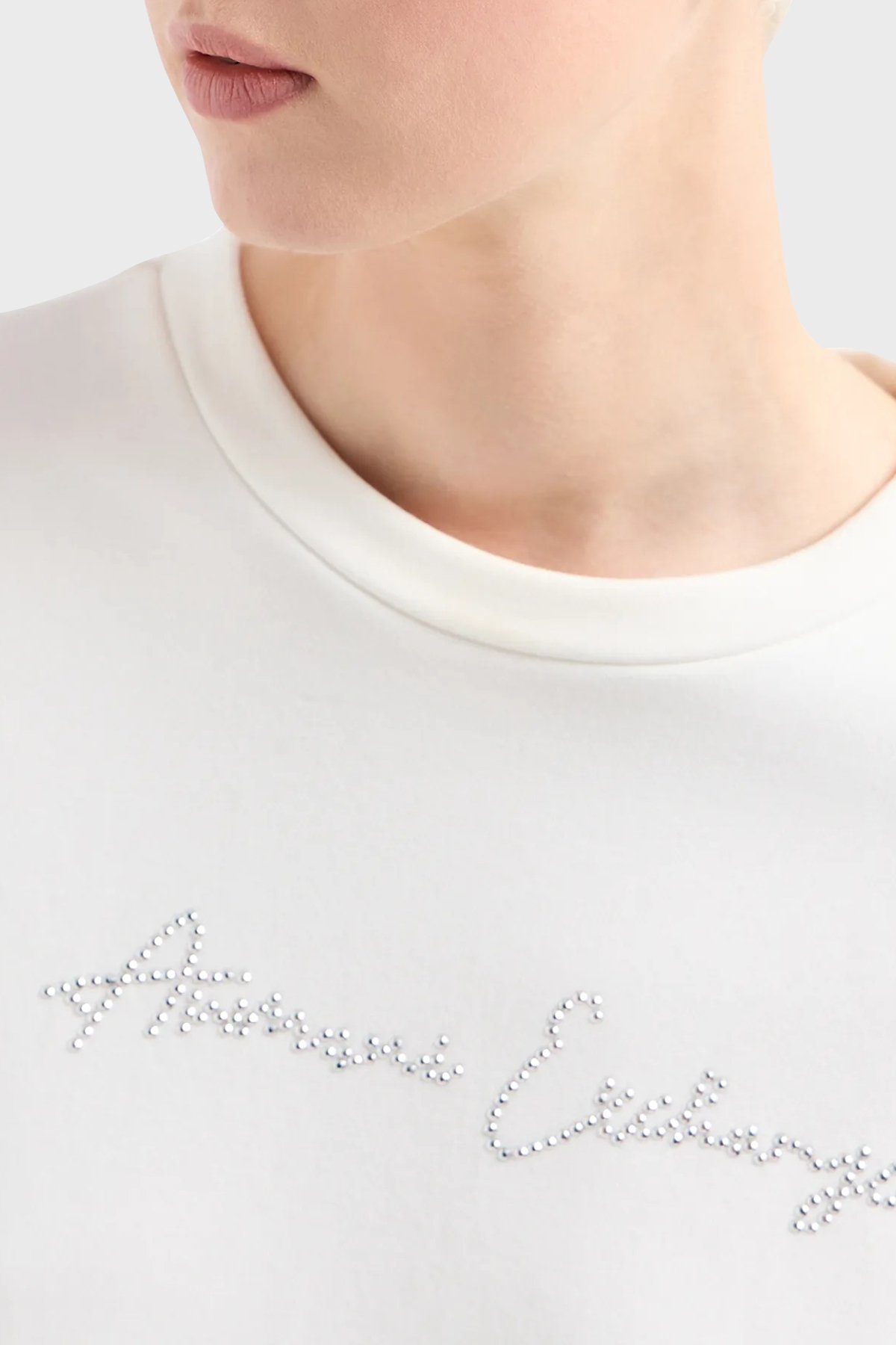 Pamuklu Regular Fit Bisiklet Yaka Bayan Sweat 3DYM13 YJFFZ 1125 BEYAZ