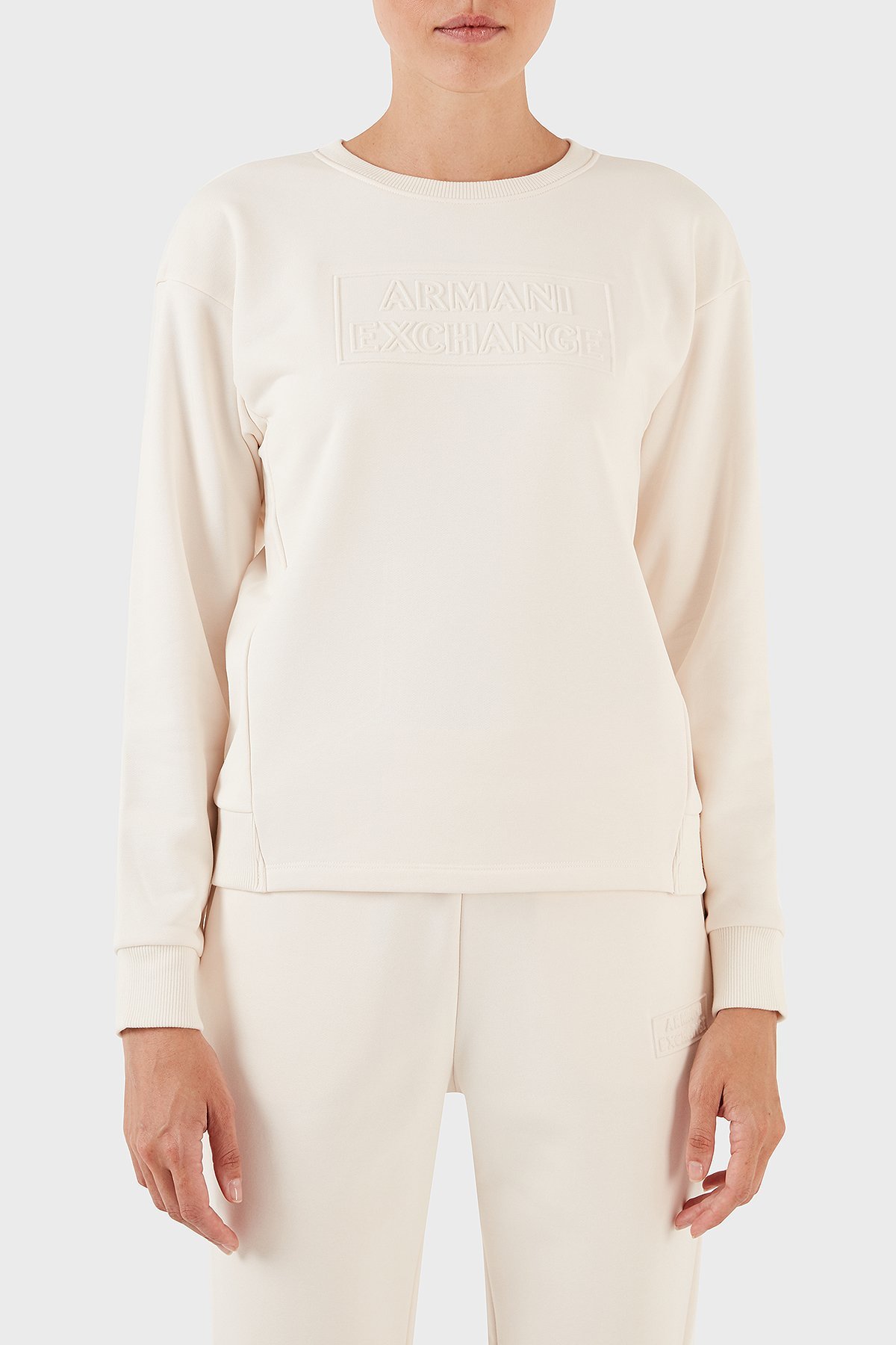 Armani Exchange Comfort Fit Kapüşonlu Taşlı Logolu Bayan Sweat XW000094 AF10804 U1003 EKRU - Armani Exchange Armani Exchange Comfort Fit Kapüşonlu Taşlı Logolu Bayan Sweat XW000094 AF10804 U1003 EKRU - Armani Exchange (1)