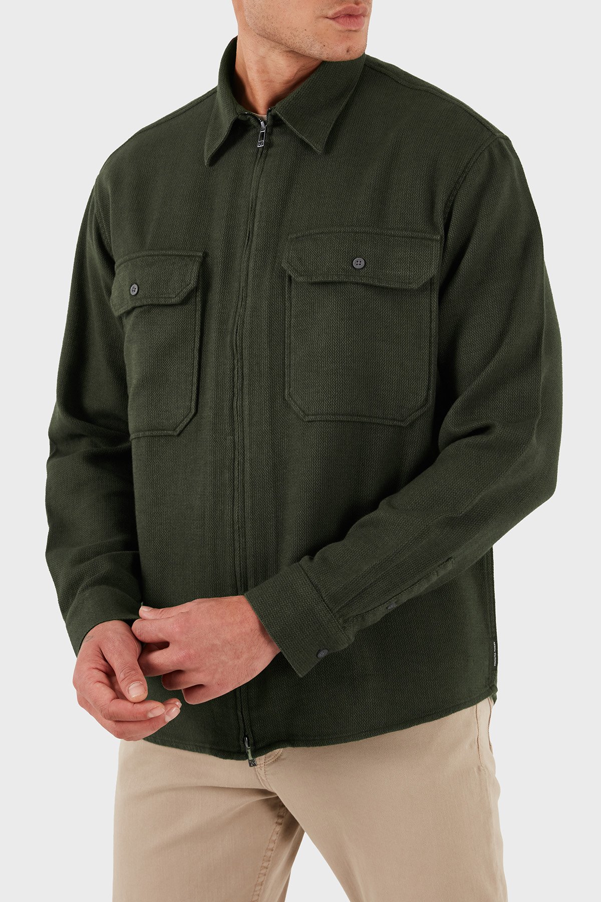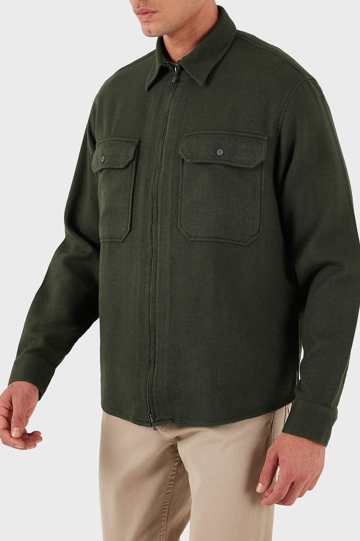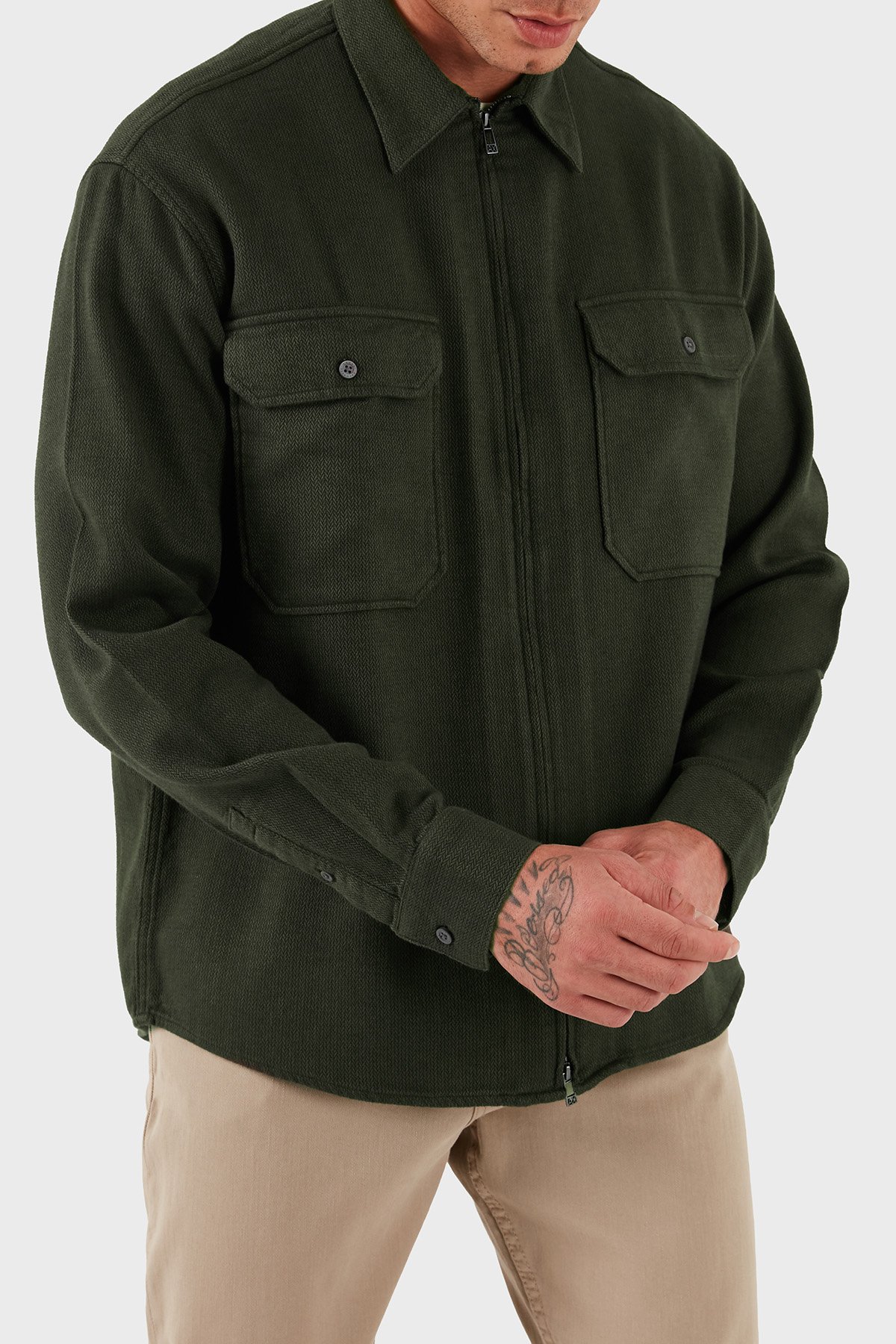 Pamuklu Regular Fit Fermuarlı Cepli Erkek Gömlek XM001140 AF16611 F8022 KAHVE