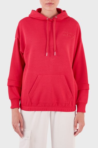 Pamuklu Regular Fit Kanguru Cepli Kapüşonlu Bayan Sweat 6RYM72 YJBRZ 14BB KIRMIZI
