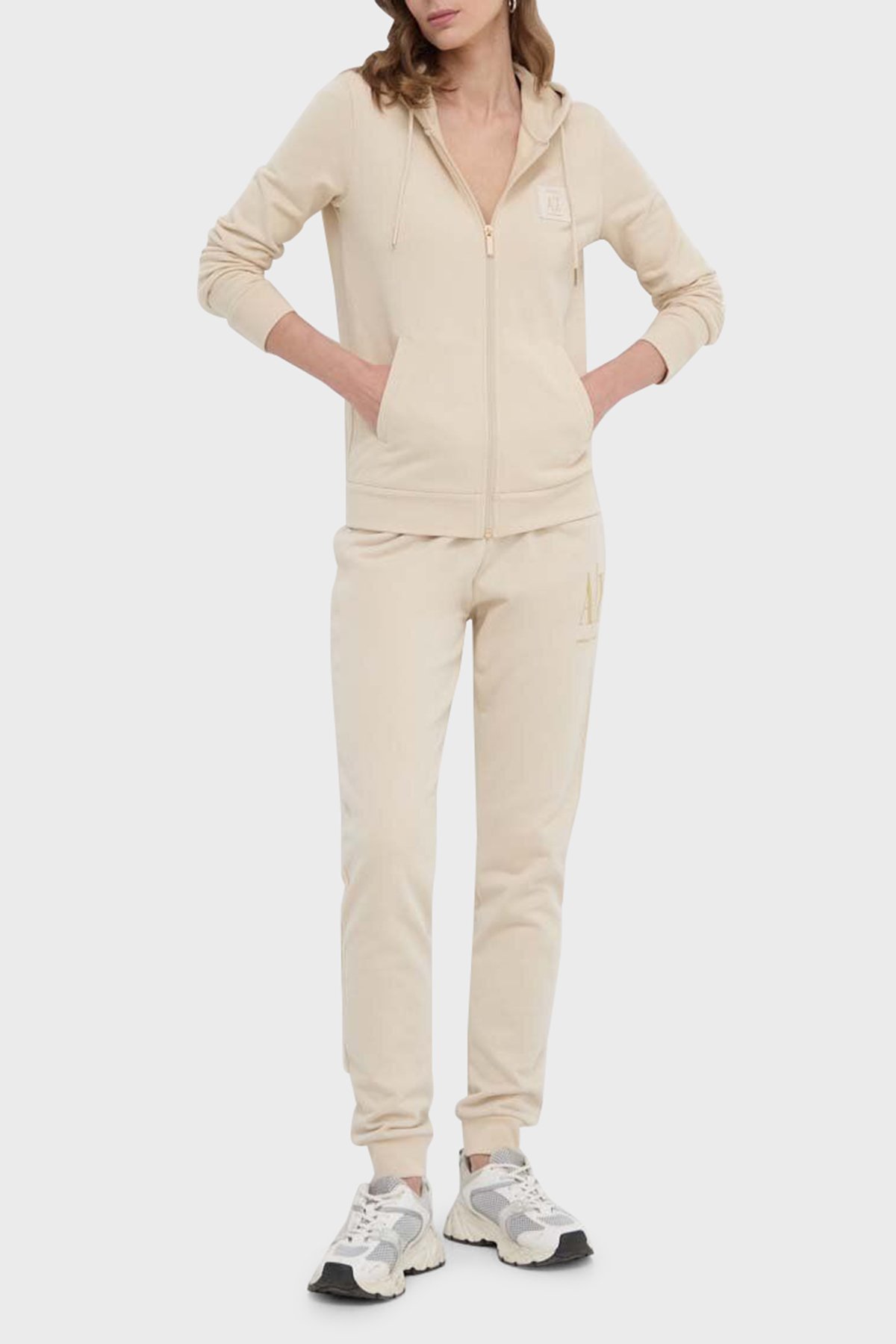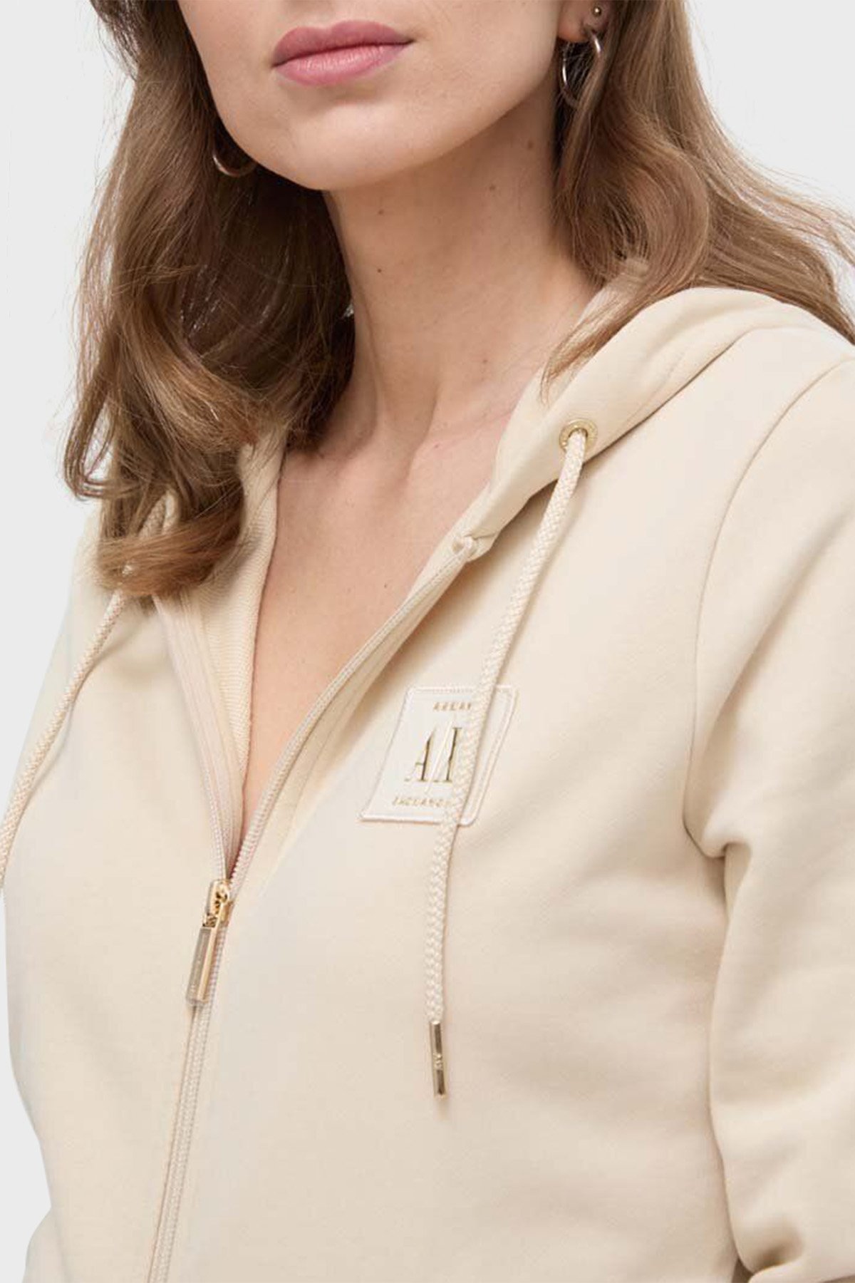 Armani Exchange Comfort Fit Kapüşonlu Taşlı Logolu Bayan Sweat XW000094 AF10804 U1003 EKRU - Armani Exchange Armani Exchange Comfort Fit Kapüşonlu Taşlı Logolu Bayan Sweat XW000094 AF10804 U1003 EKRU - Armani Exchange (1)