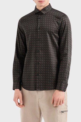 Pamuklu Regular Fit Logolu Erkek Gömlek 6DZC45 ZNZRZ 72AF SİYAH