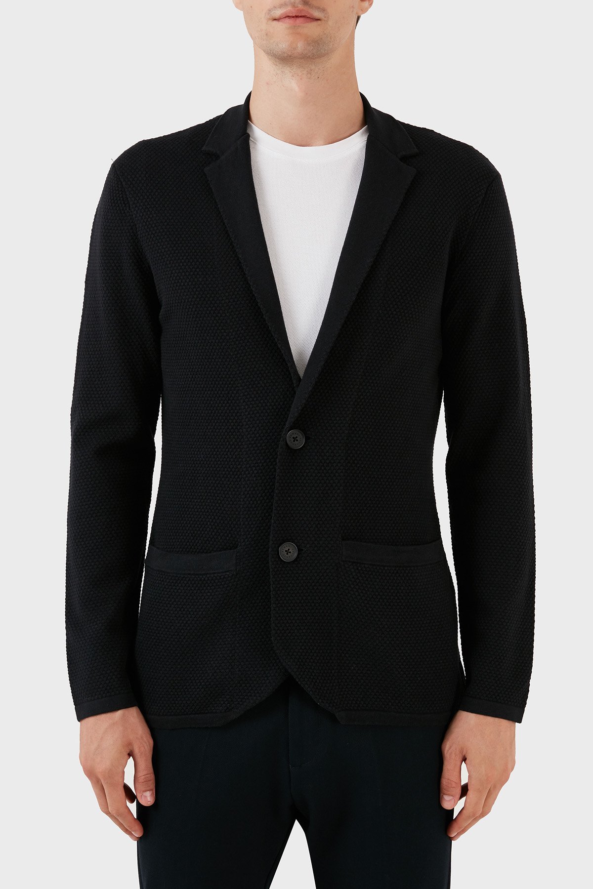 Pamuklu Regular Fit Örme Blazer Erkek Ceket 6RZG2A ZM1ZZ 1200 SİYAH