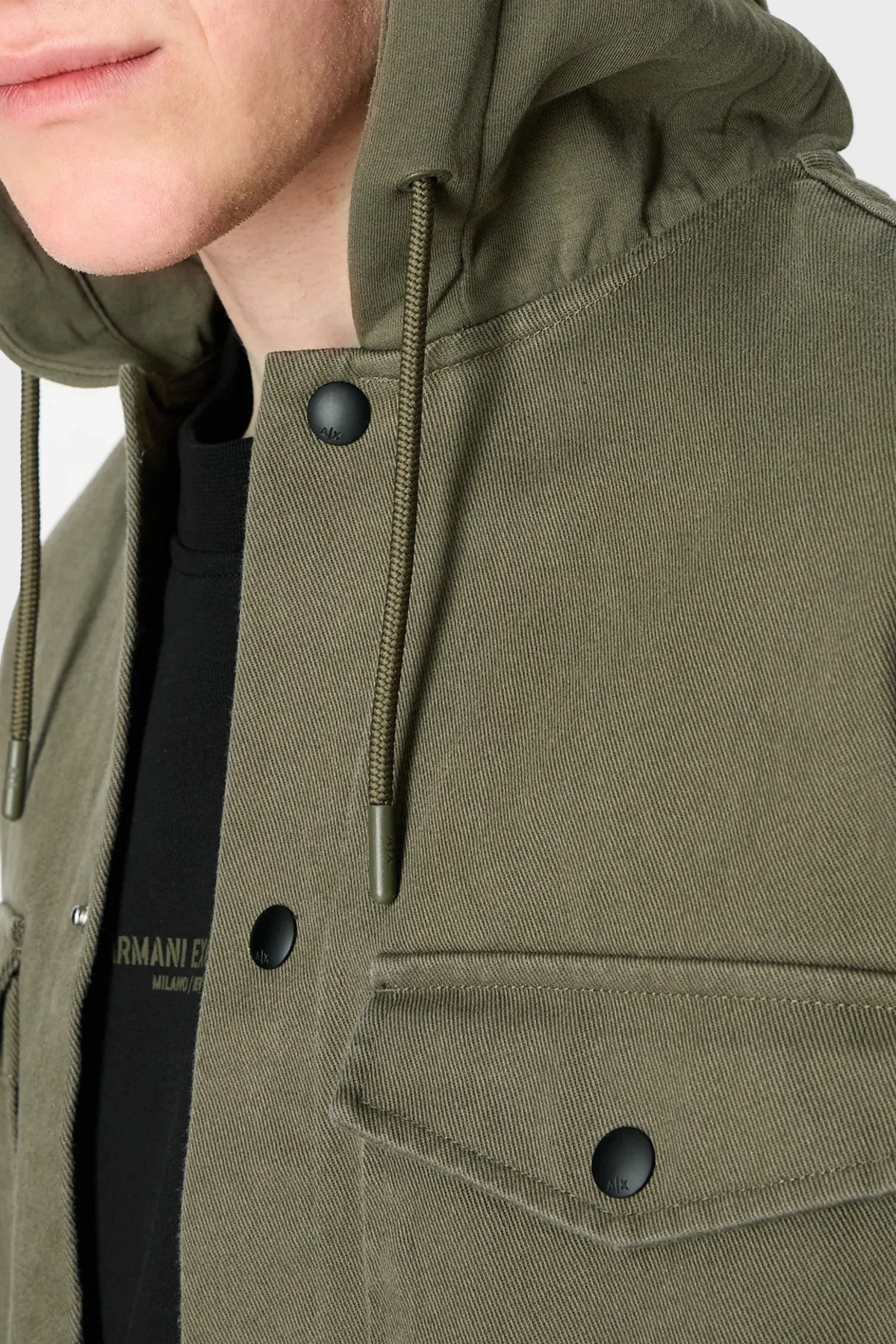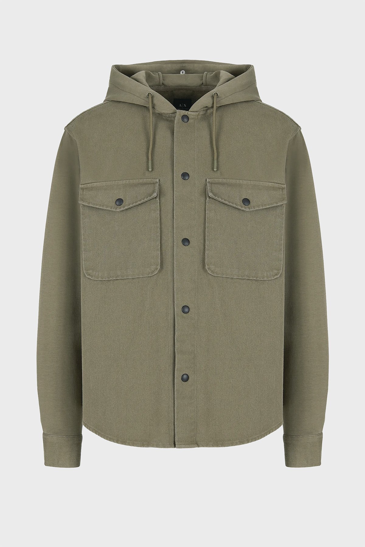 Pamuklu Relaxed Fit Çift Cepli Kapüşonlu Erkek Gömlek 6RZCL1 Z196Z 1784 HAKİ