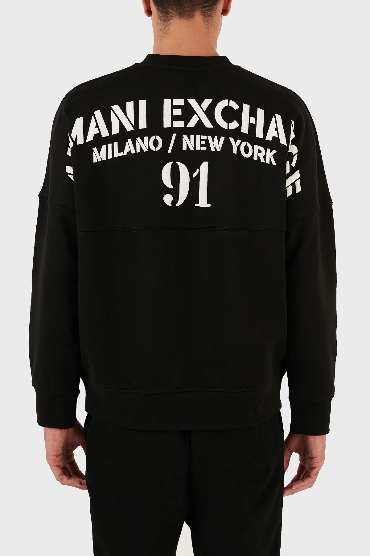 Pamuklu Sırt Baskılı Bisiklet Yaka Relaxed Fit Erkek Sweat 6RZMLG ZJ4XZ 22CG SİYAH-BEYAZ