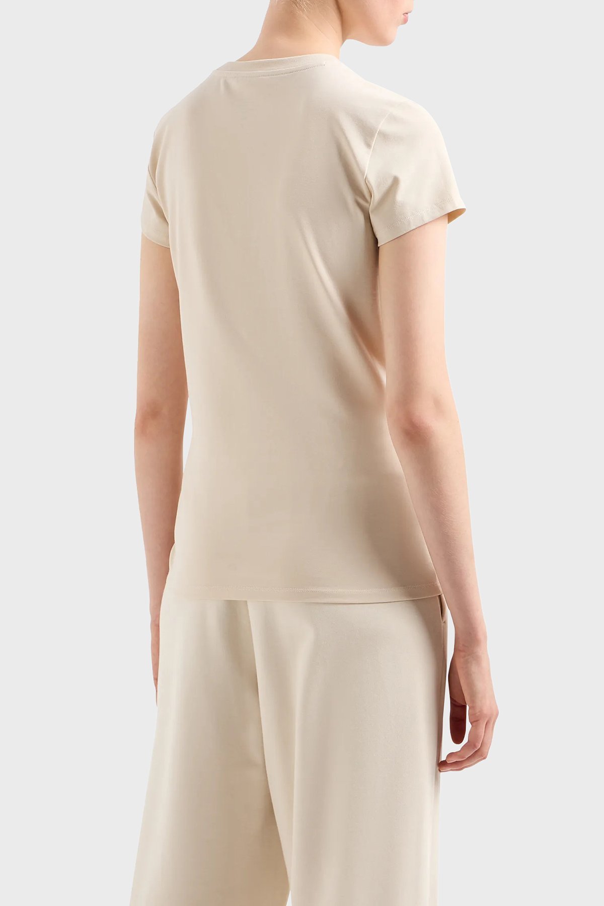 Pamuklu Slim Fit Bisiklet Yaka Bayan T Shirt 3DYT27 YJDTZ 1787 BEJ