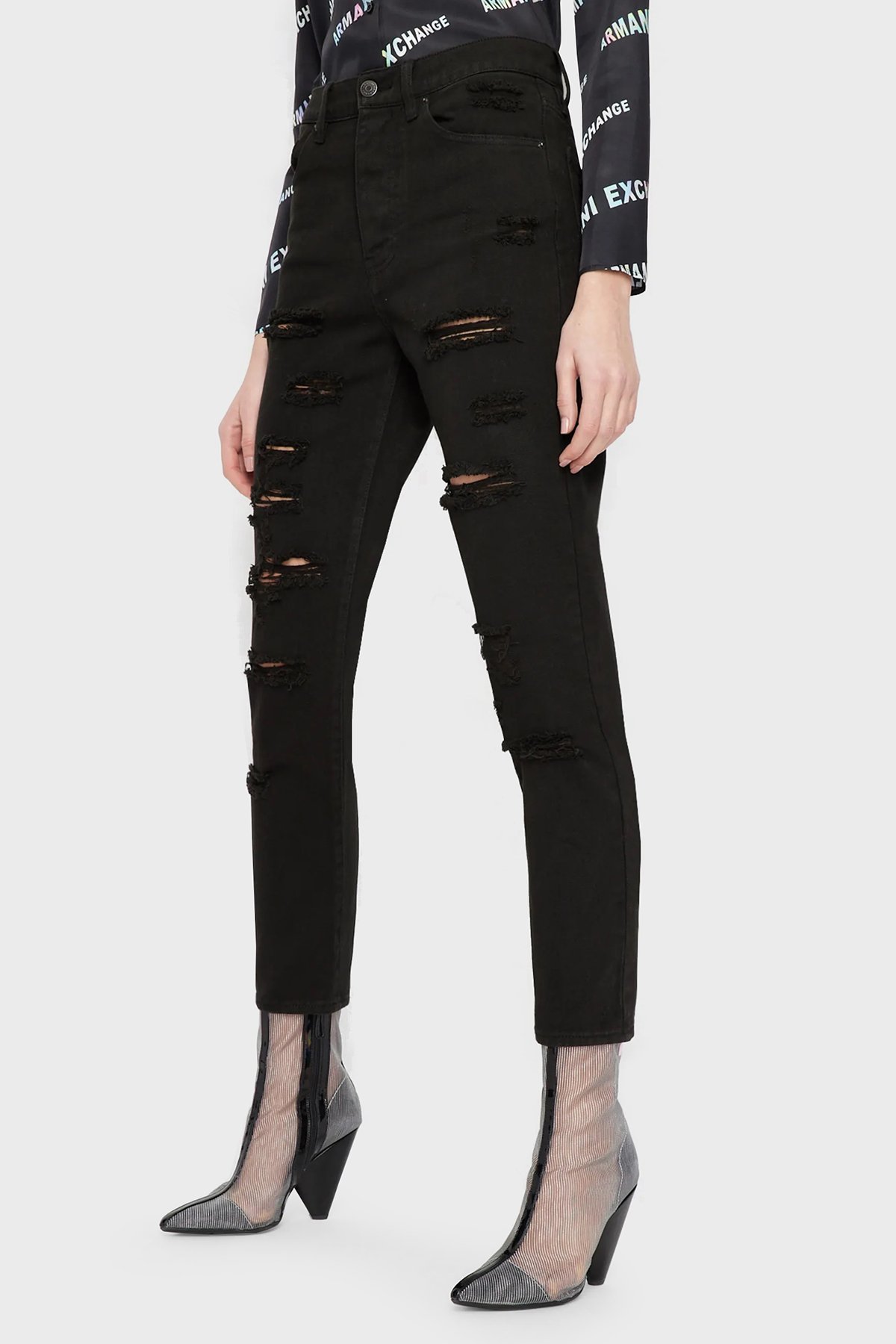 Pamuklu Yüksel Bel Slim Fit Yırtık Detaylı J51 Jeans Bayan Kot Pantolon 3RYJ51 Y1HRZ 1200 SİYAH