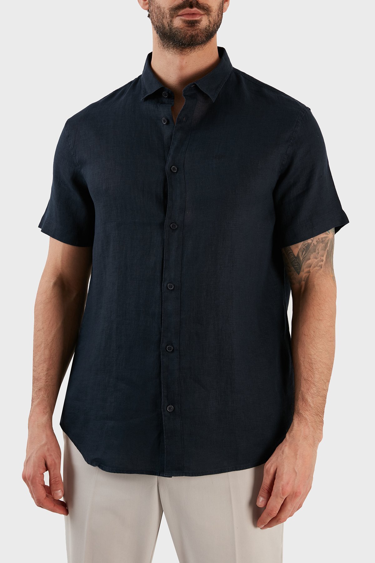 Regular Fit % 100 Keten Kısa Kollu Erkek Gömlek 8NZC67 ZNCFZ 1510 LACİVERT