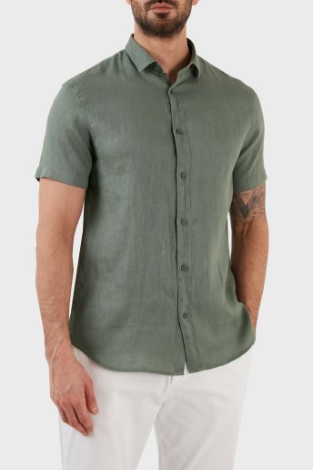 Regular Fit % 100 Keten Kısa Kollu Erkek Gömlek 8NZC67 ZNCFZ 1881 YEŞİL