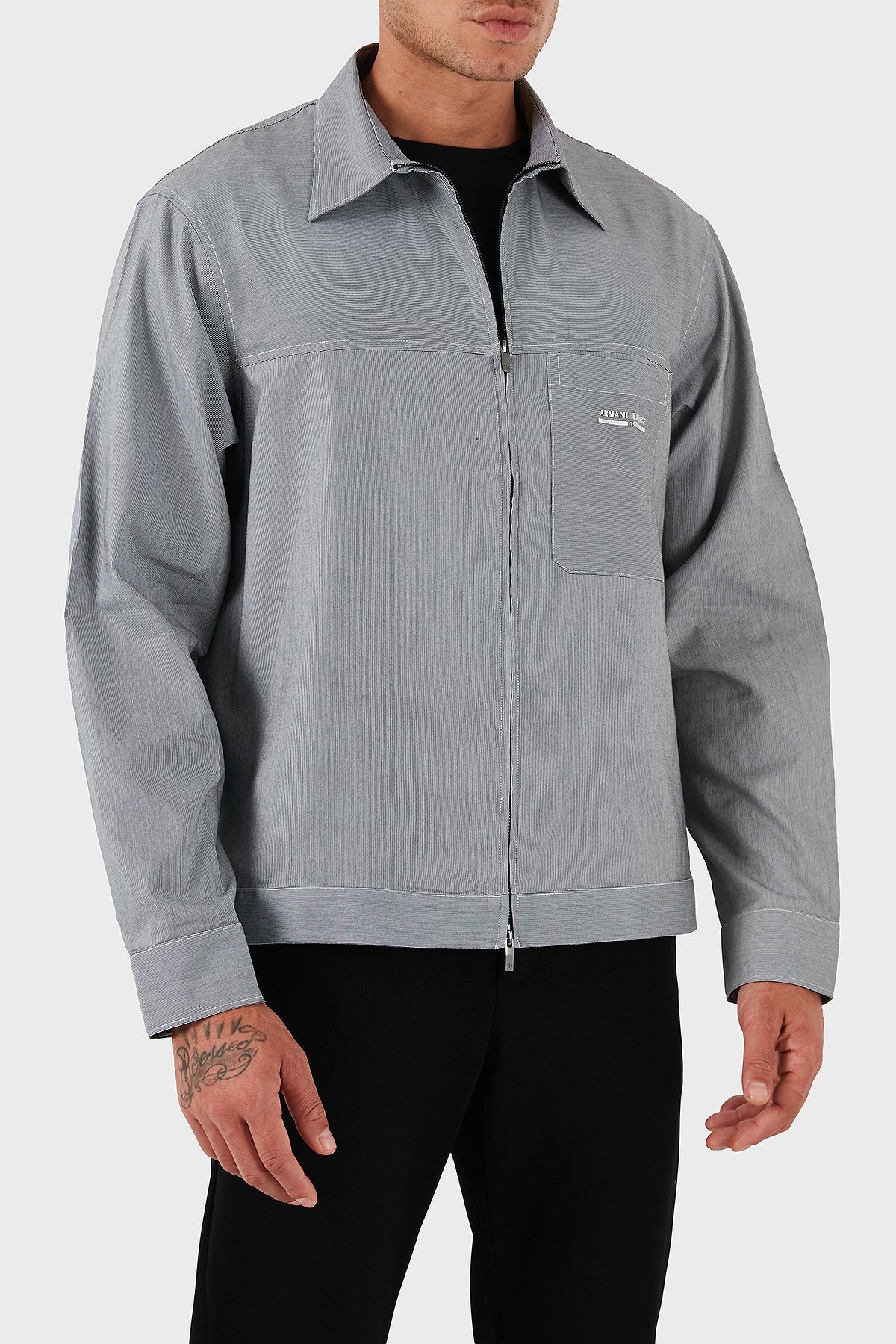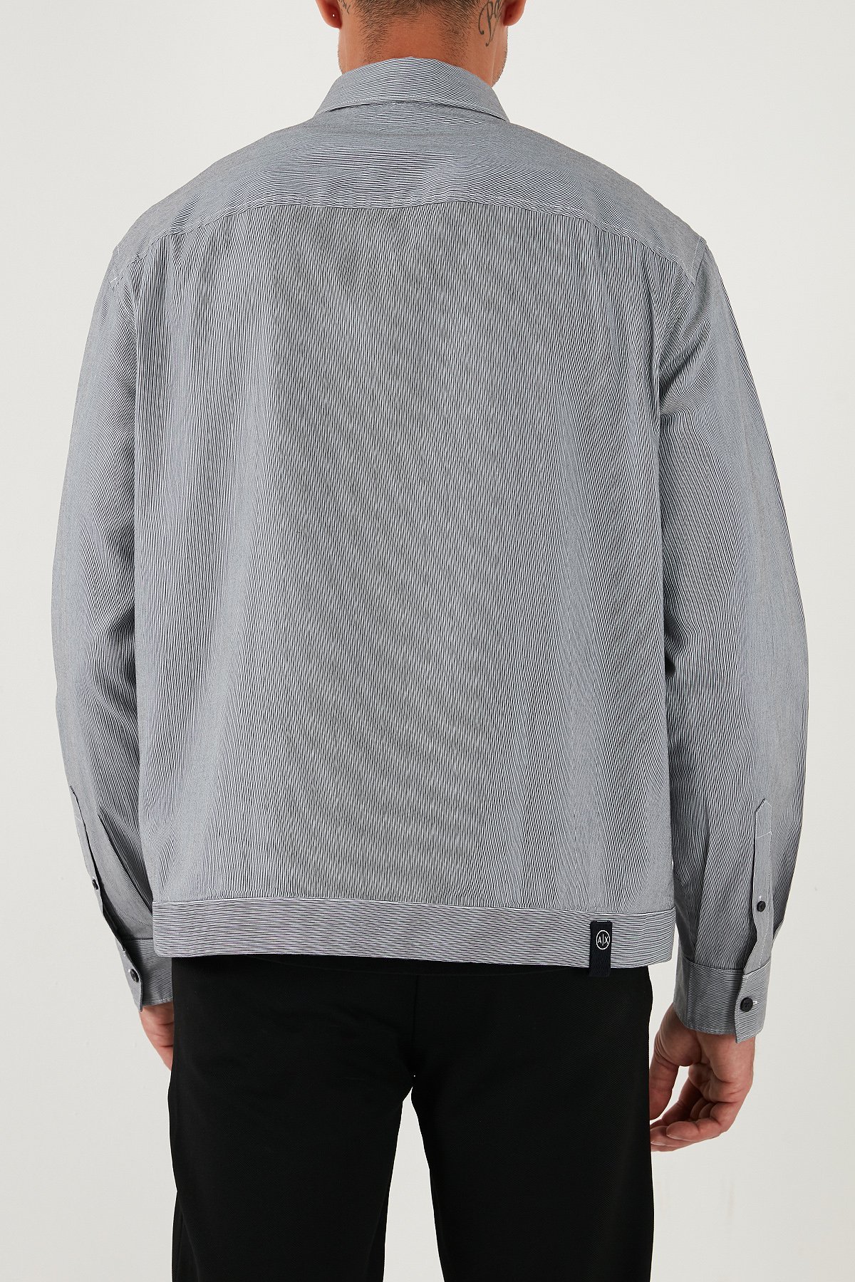 Regular Fit Ceket Yaka Fermuarlı Logolu Erkek Gömlek Ceket XM000956 AF10256 FB078 LACİVERT-BEYAZ