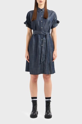 Regular Fit Kemerli Mini Denim Bayan Elbise 3DYA64 Y15PZ 1500 MAVİ