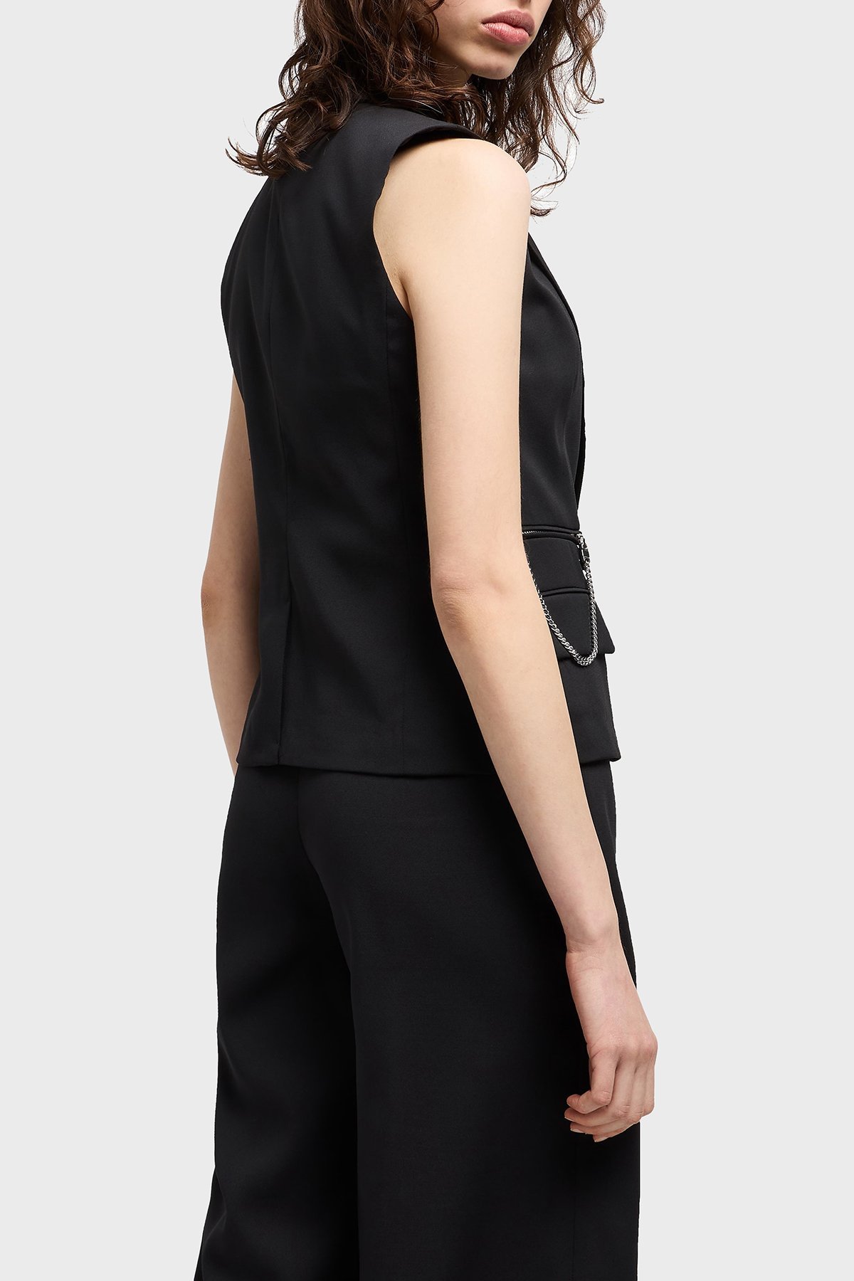 Regular Fit Mono Yaka Zincir Detaylı Bayan Yelek XW000435 AF12749 UC001 SİYAH