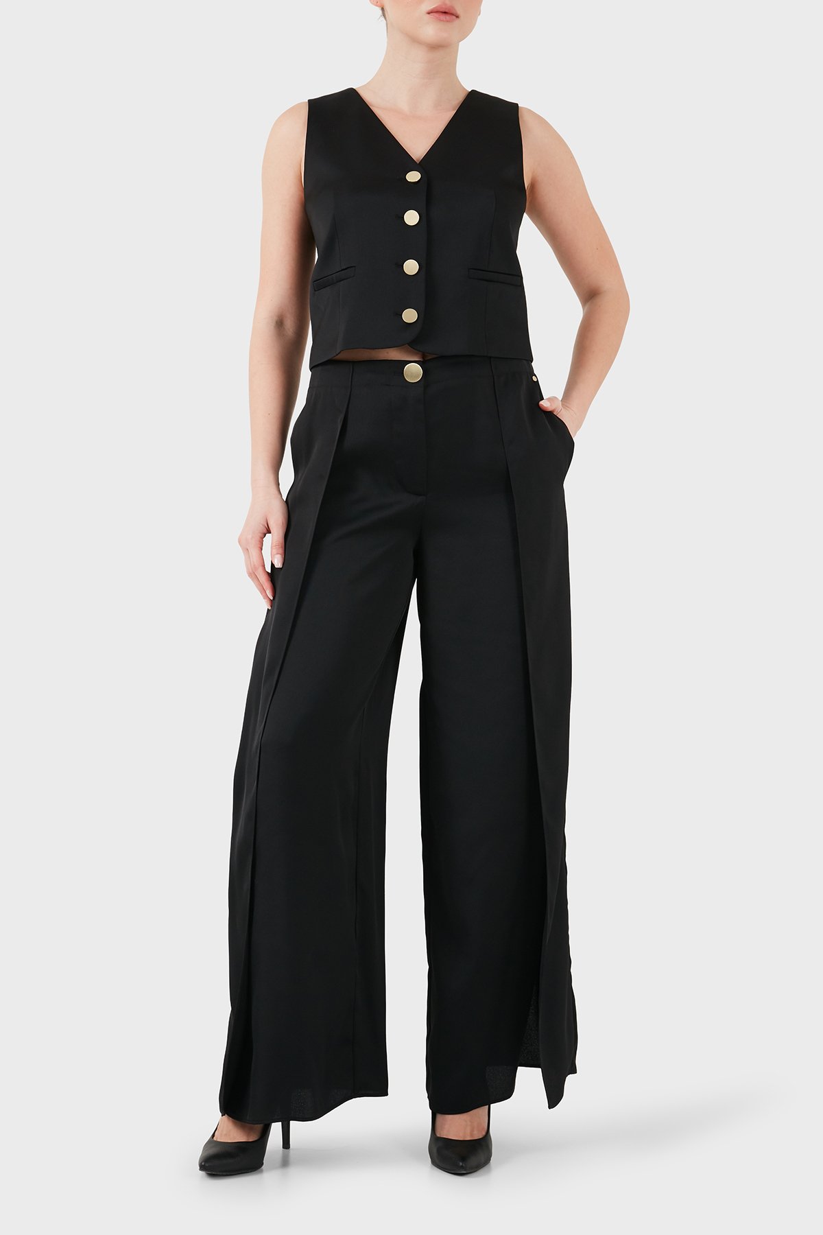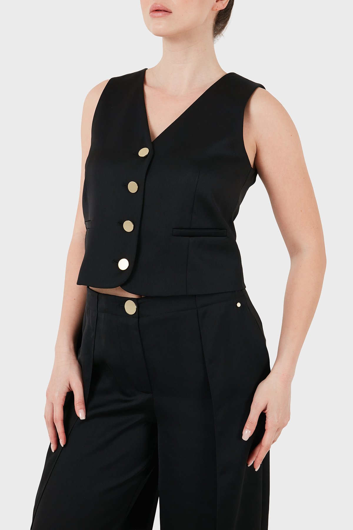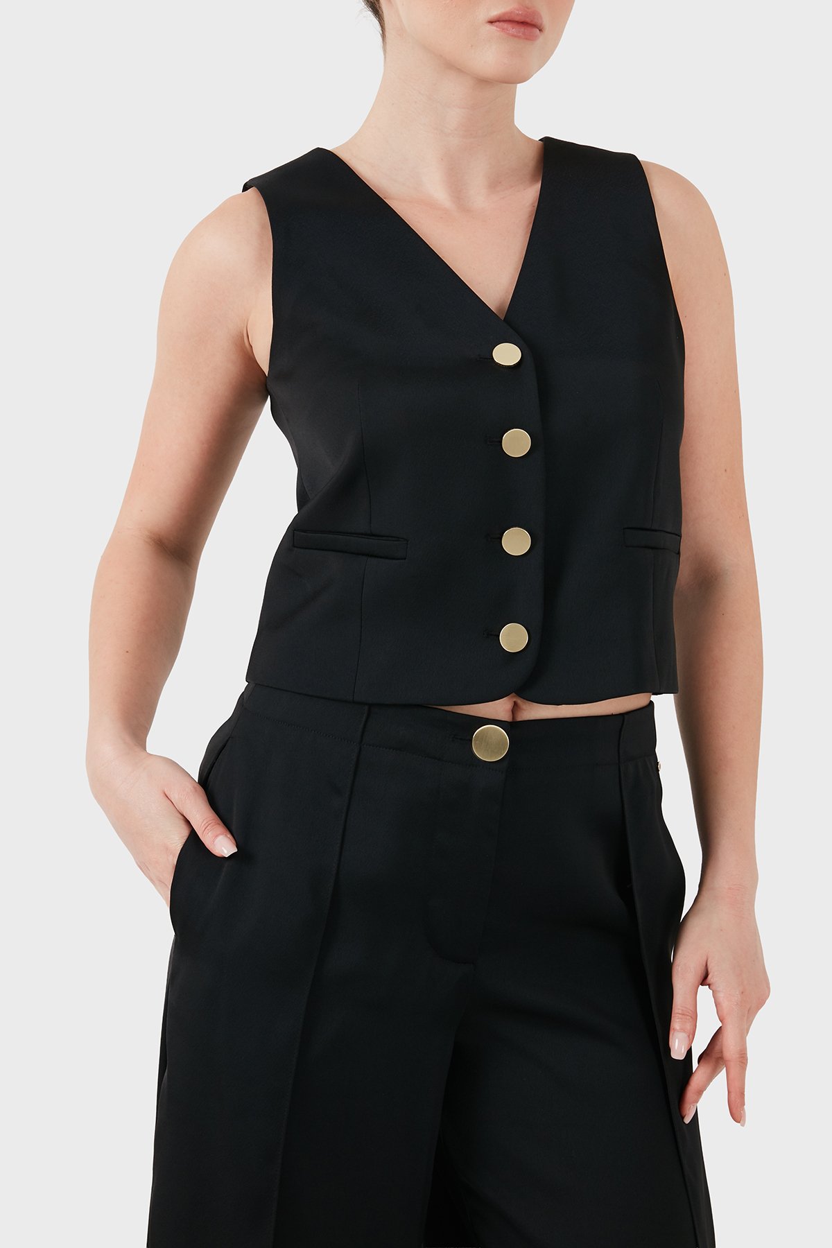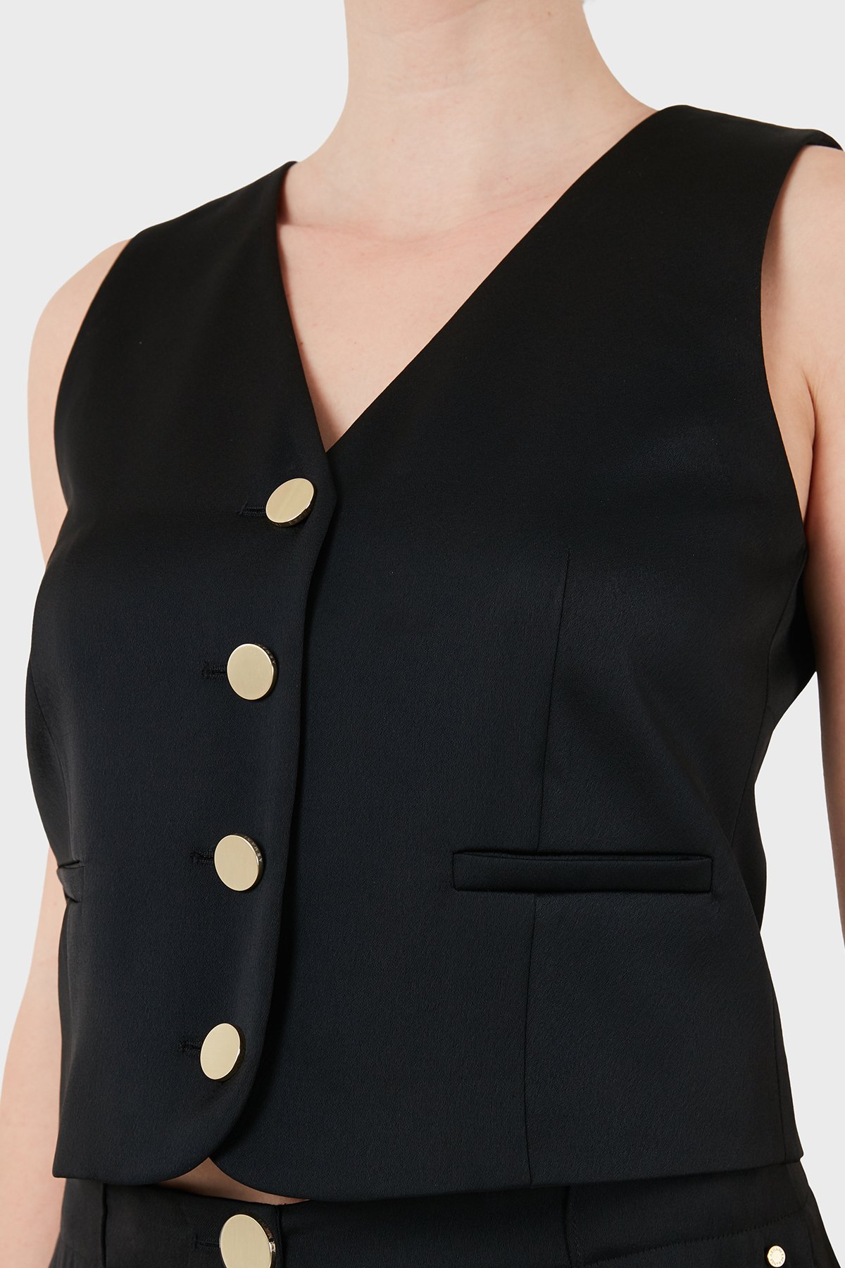 Regular Fit V Yaka Düğmeli Kadın Yelek XW001954 AF21553 UC001 SİYAH