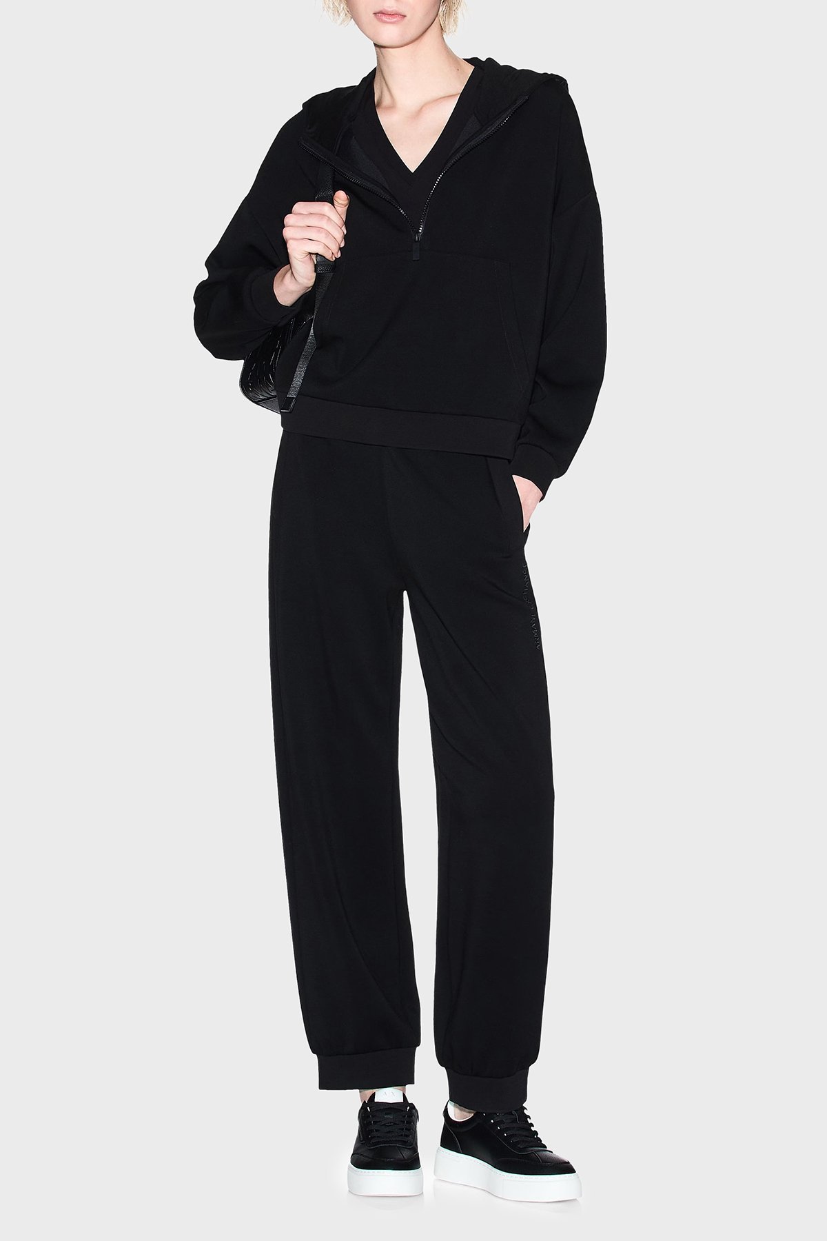 Relaxed Fit Kapüşonlu Yaka Kanguru Cepli Bayan Sweat XW000980 AF16111 UC001 SİYAH