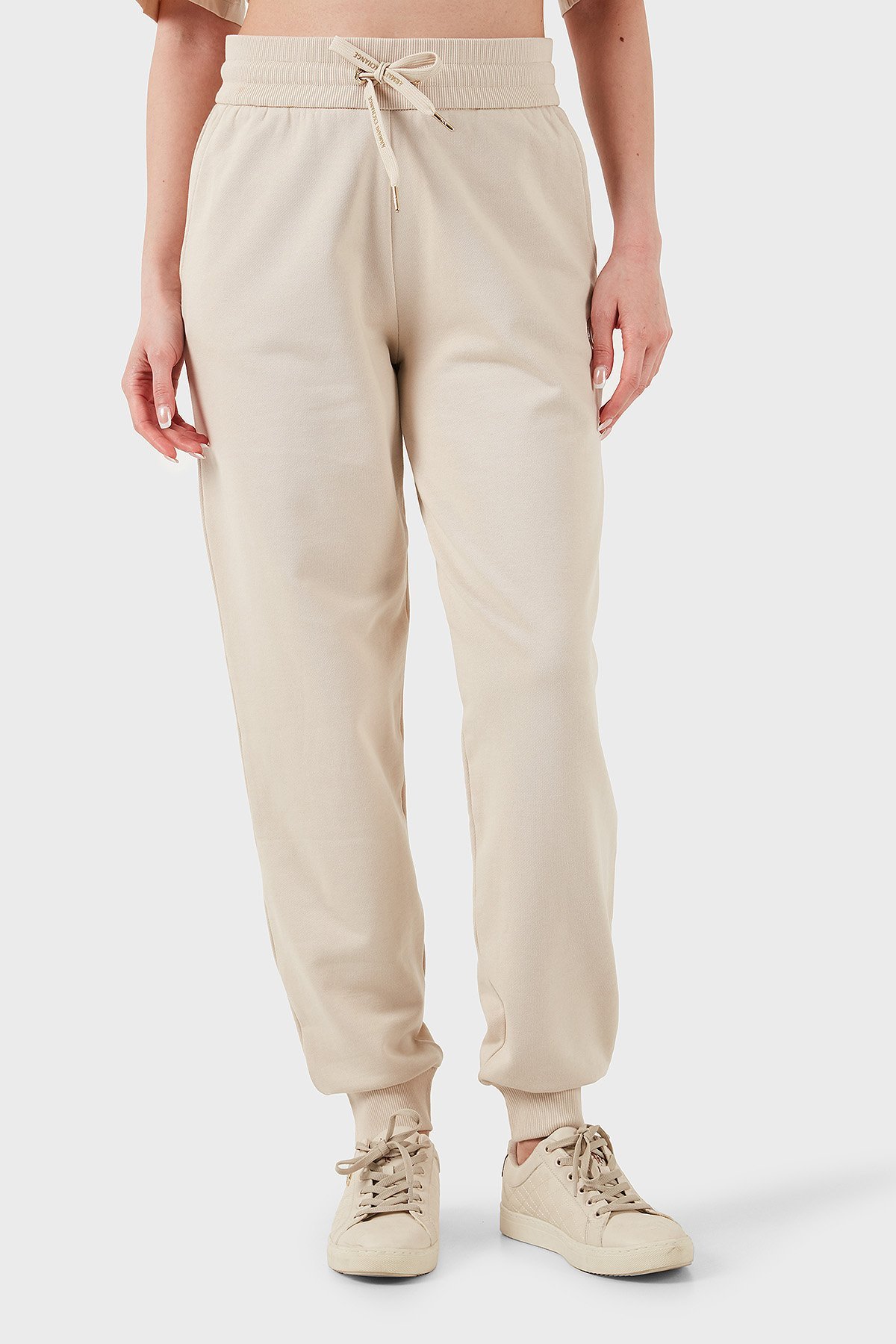 Relaxed Fit Lastikli Bel Ribanalı Paça Bayan Pantolon XW000319 AF12217 U1095 BEJ