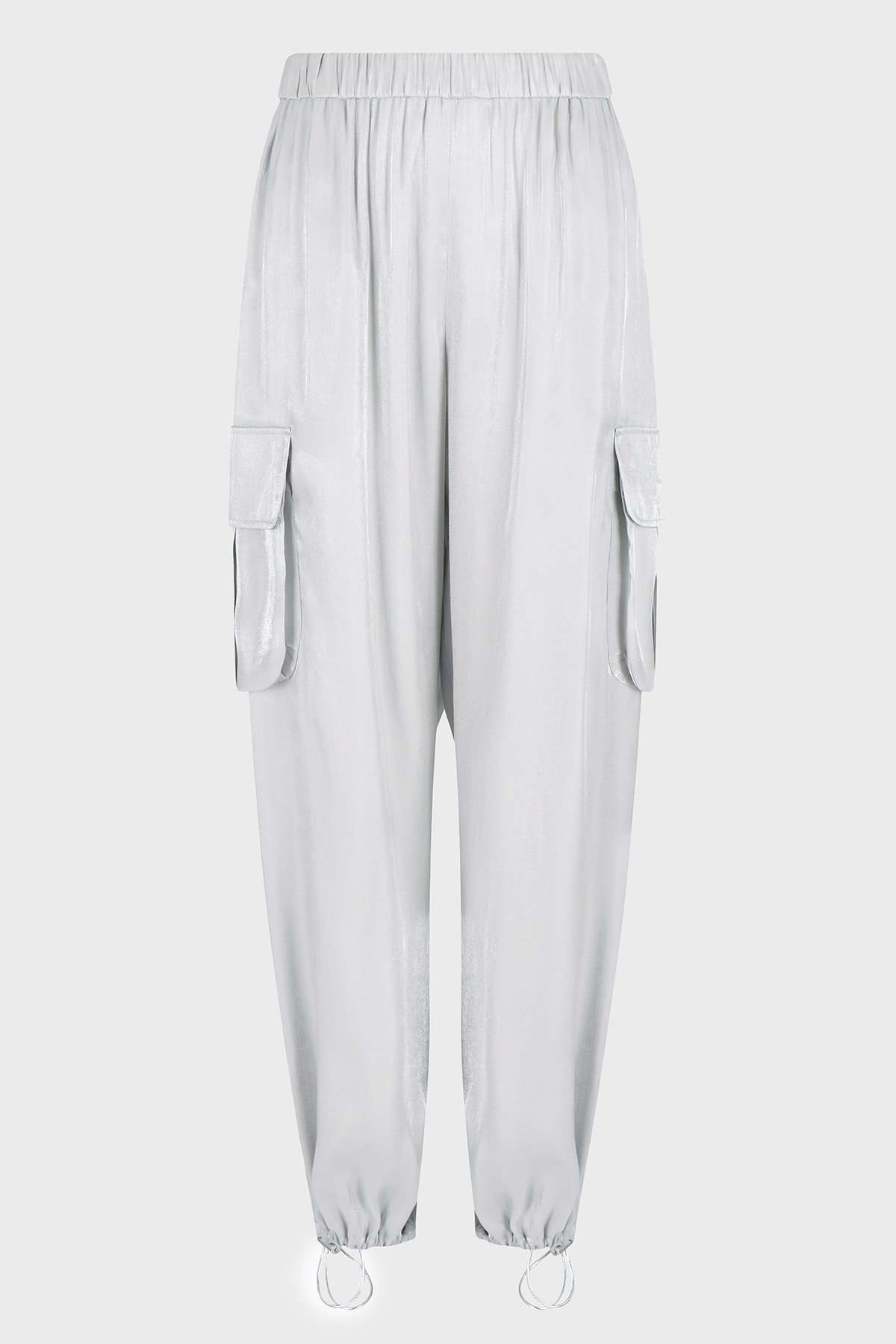 Relaxed Fit Lastikli Paça Simli Saten Kargo Bayan Pantolon XW000139 AF10839 M8047 AÇIK GRİ