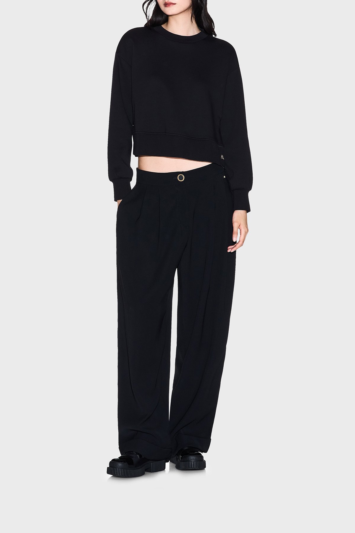 Relaxed Fit Yüksek Bel Geniş Paça Bayan Pantolon XW001826 AF16125 UC001 SİYAH