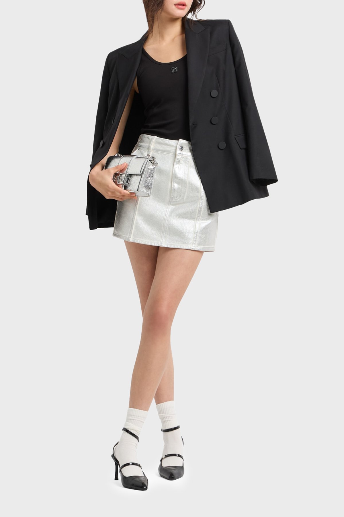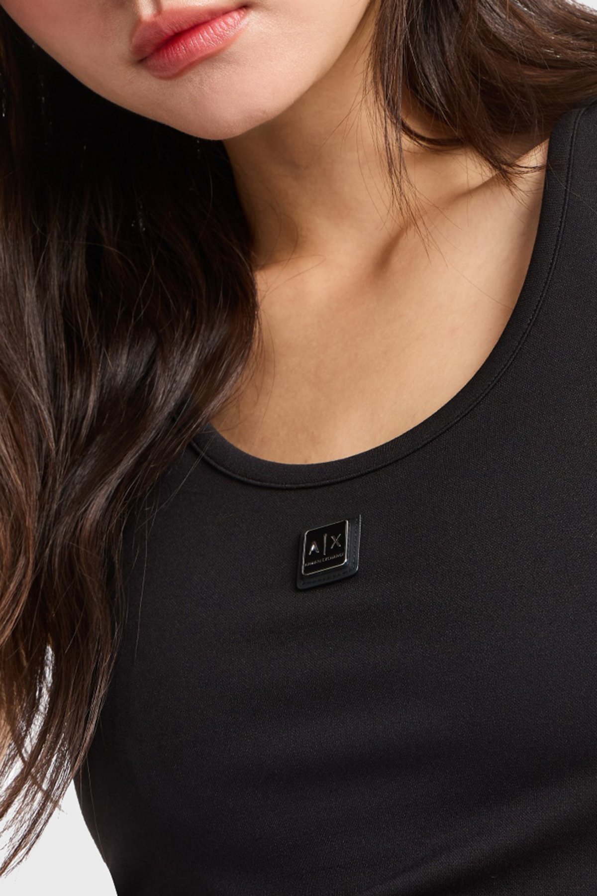 Slim Fit Yuvarlak Yaka Logolu Bayan Top XW000090 AF10805 UC001 SİYAH