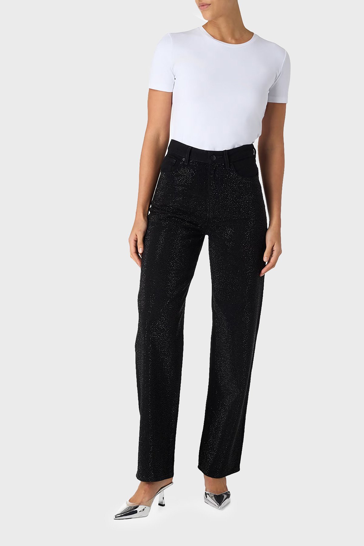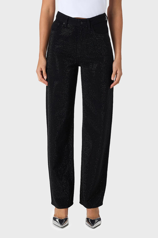 Taşlı % 100 Pamuk Relaxed Fit Yüksek Bel Geniş Paça Jeans Bayan Kot Pantolon 6DYJ38 Y19QZ 0204 SİYAH