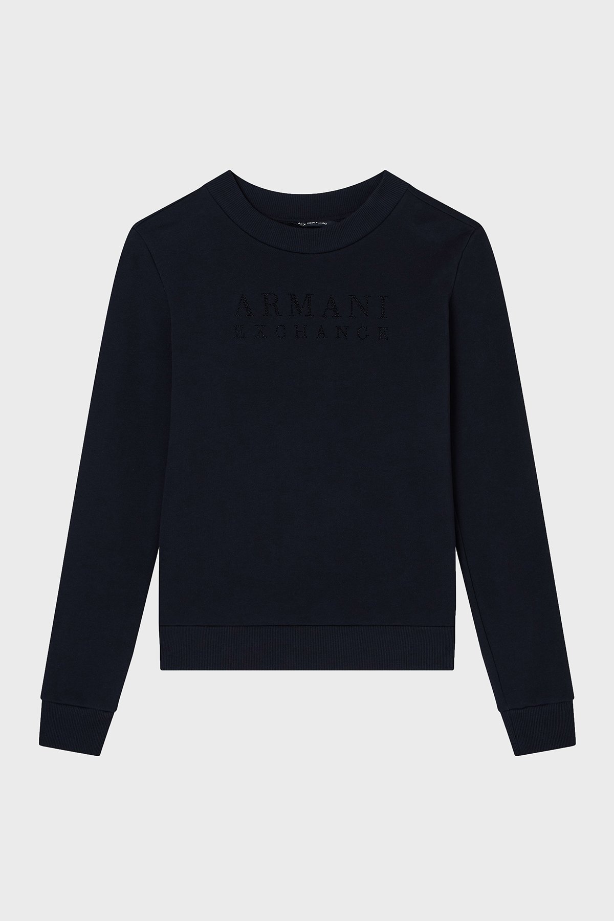Taşlı Logolu Pamuklu Regular Fit Bisiklet Yaka Bayan Sweat XW000985 AF14284 UC001 SİYAH
