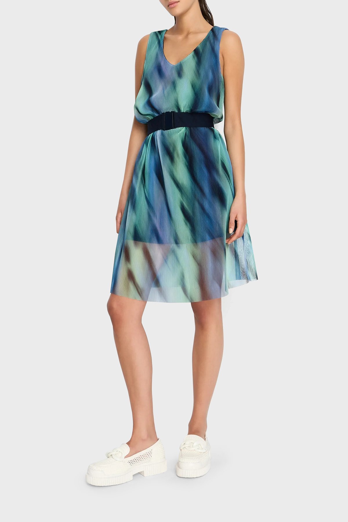 V Yaka Kemerli Mini Tül Bayan Elbise 3DYA10 YN8QZ 28AC YEŞİL